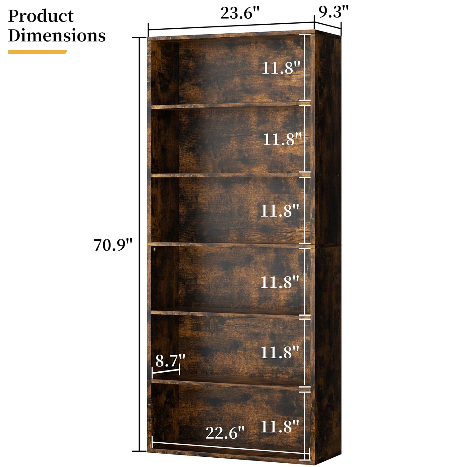 - Chic Rustic Design: 6-tier bookcase standing at 23.6" W* 9.3" D * 70.9" H, with the clean lines, is ideal for almost any space in your home.