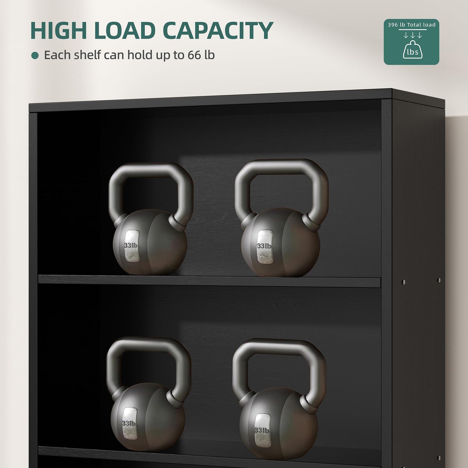 Shintenchi Bookshelf, Industrial Bookshelves and Bookcases with Doors Floor Standing 6 Shelf Display Storage Shelves 70.6 inches Tall Bookcase for Home Office, Living Room (Black)