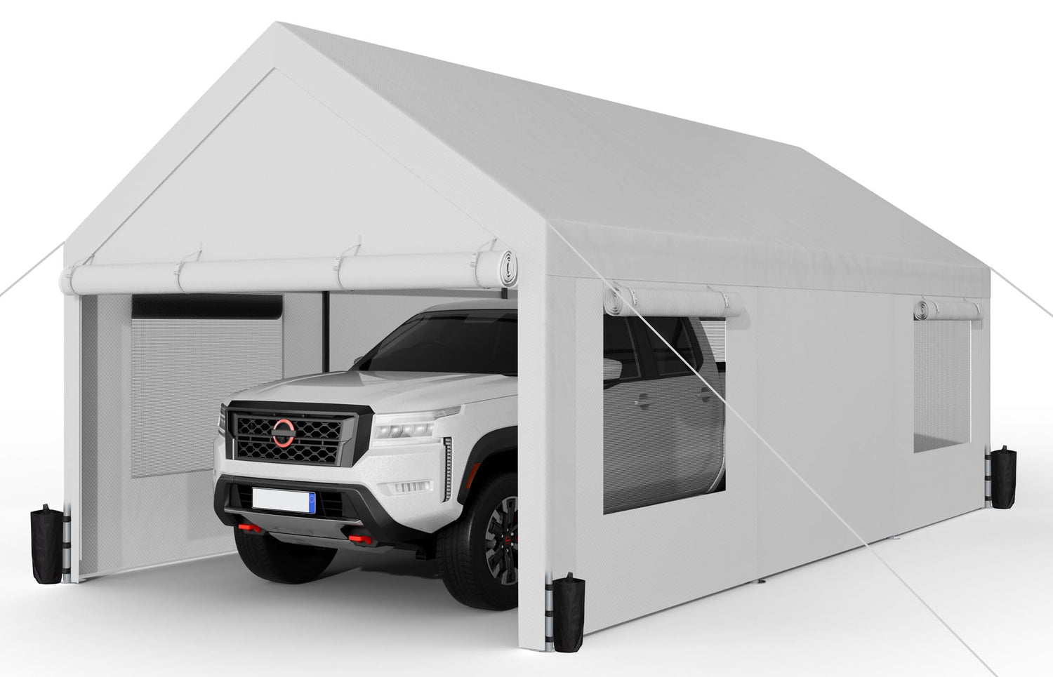 Shintenchi Carport 10' x 20' Heavy Duty Portable Garage, Car Port Canopy with Side-Opening Removable Door & Roll-Up Windows, Car Canopy for Truck,Car,Boat,Motorcycle,White