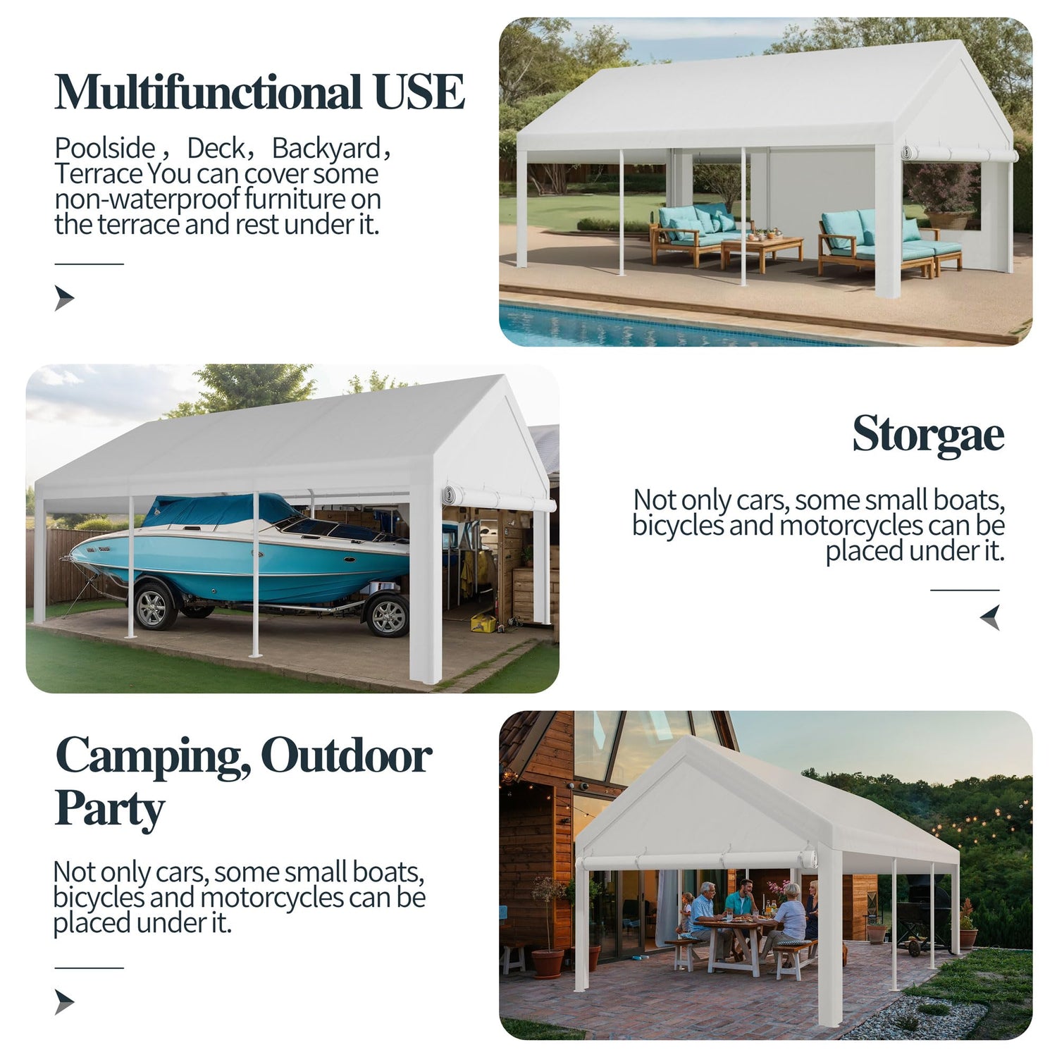 - 【Larger Carport】: The 10x20 heavy duty carport provides plenty of space for your vehicles, boats, cargo, etc. Detachable side walls and doors to meet your needs. It is suitable for outdoor events like parties, weddings, commercial fairs.