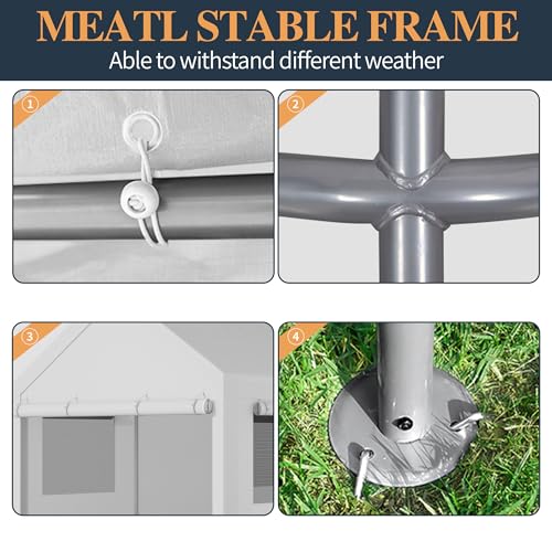 - 【Heavy Stable Metal Frame】: Our heavy duty car garage tent uses 8 strong φ38mm galvanized steel pipes, unique double wall construction, wall thickness of 0.8mm, durable. The surface is coated with anti-rust powder coating to prevent cracking, peeling, rust and corrosion.