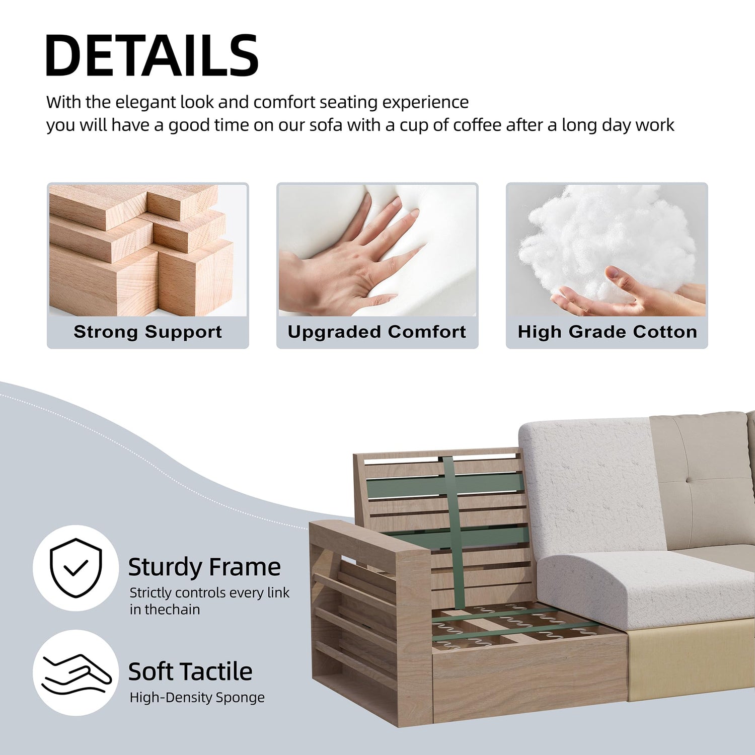 - Versatile Sectional Sofa: Sectional sofa with an extra wide chaise lounge for maximum comfort,When friends come by, you can place the ottoman on either side of the sofa at random