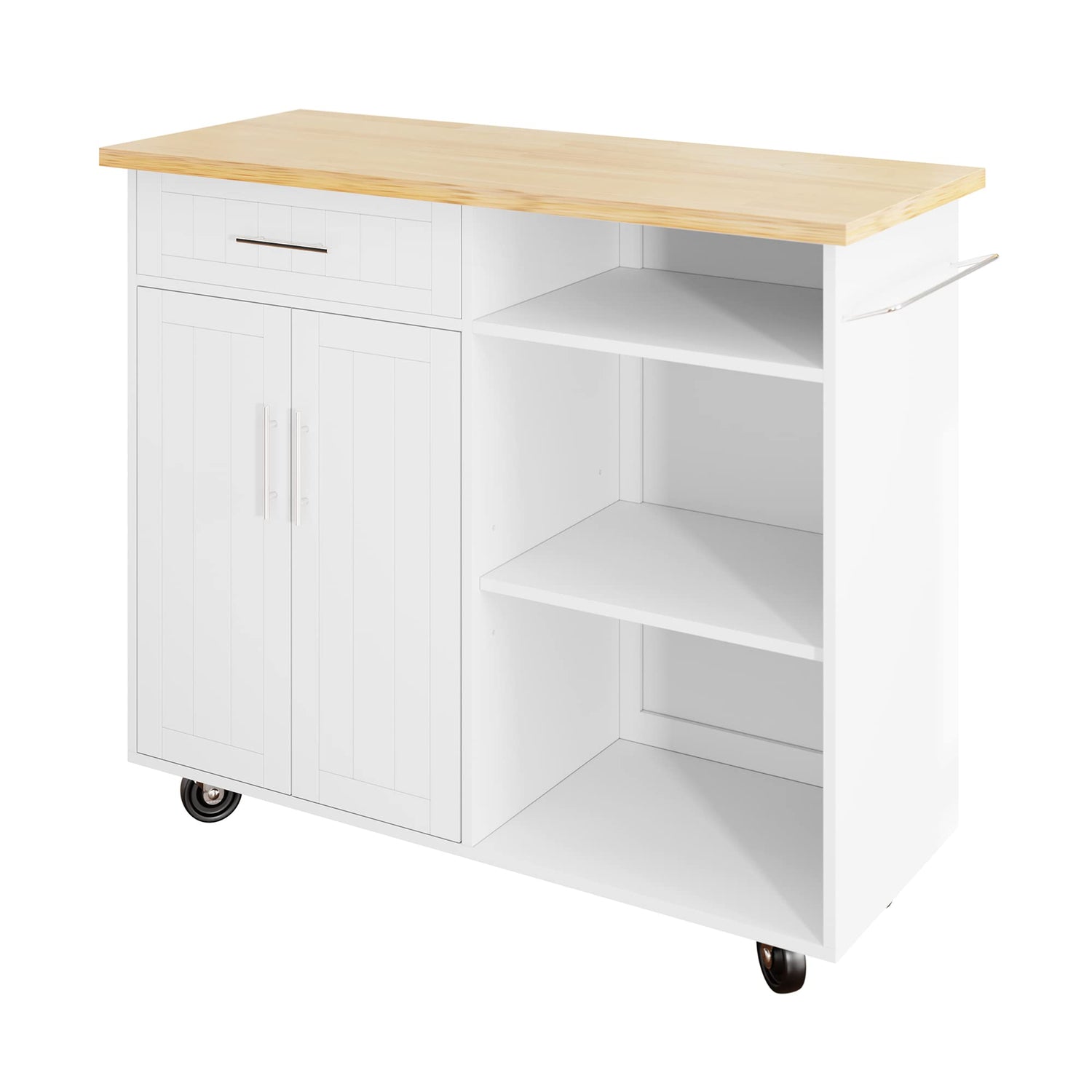 - Convenient Kitchen Organizer: This kitchen island with storage is sturdy enough to store daily equipment and machinery. Drawers are perfect for napkins, cutlery, while adjustable shelve will provide enough space for small appliances.Towel racks can hold kitchen paper and towel.