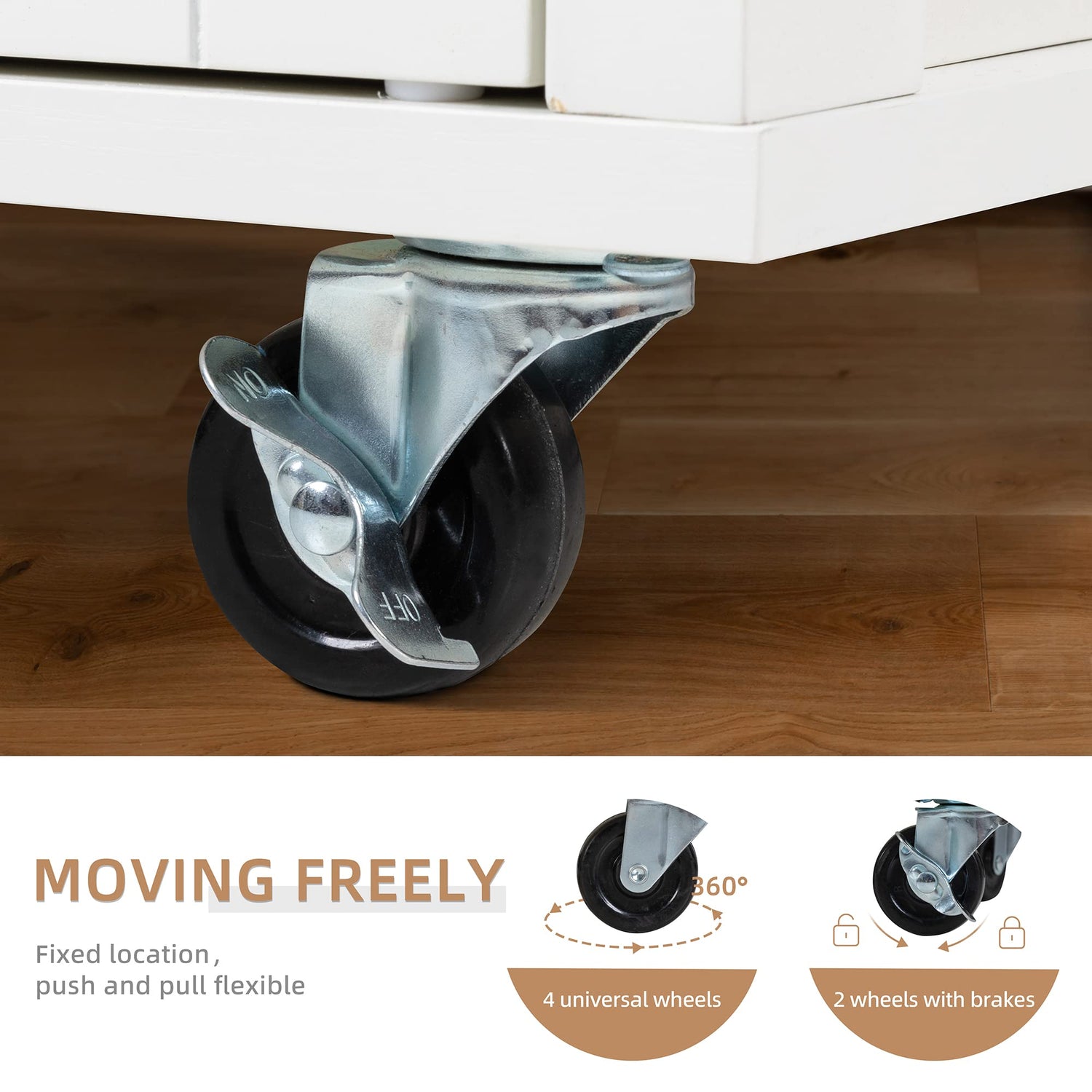 Shintenchi Kitchen Island Cart with Storage,Rolling Side Table on Wheels with Worktop,Single Door Cabinet and Drawer for Dinning Room, White