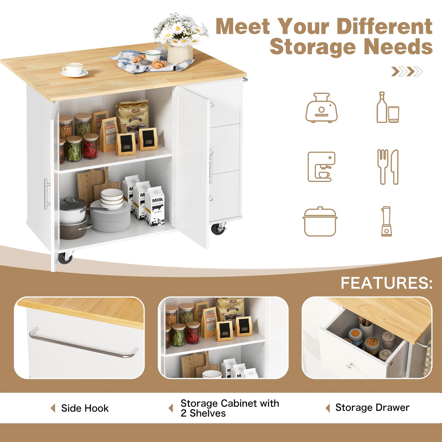Shintenchi Kitchen Island with Folding Drop Leaf, Rolling Island Table with Storage, Kitchen Cabinet on Wheels with Seating Area for Kitchen, Bar Cart with Cabinet, White