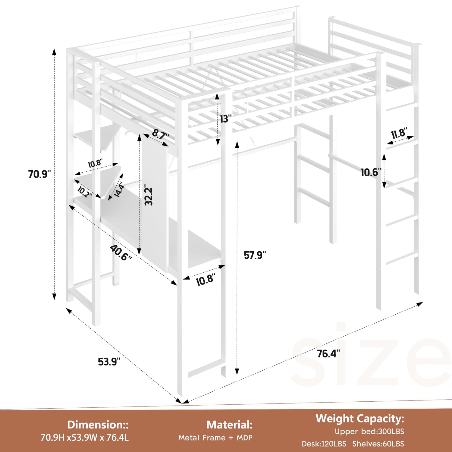 Shintenchi Loft Bed Full Size with Desk and Storage Shelves, Frame with 2 Side Ladders for Kids, Teens Adults, Spcace-Saving Noise-Free and Anti-tilt Design, White