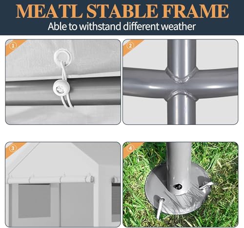 - 【Heavy Stable Metal Frame】: Our heavy duty car garage tent uses 8 strong φ38mm galvanized steel pipes, unique double wall construction, wall thickness of 0.8mm, durable. The surface is coated with anti-rust powder coating to prevent cracking, peeling, rust and corrosion.