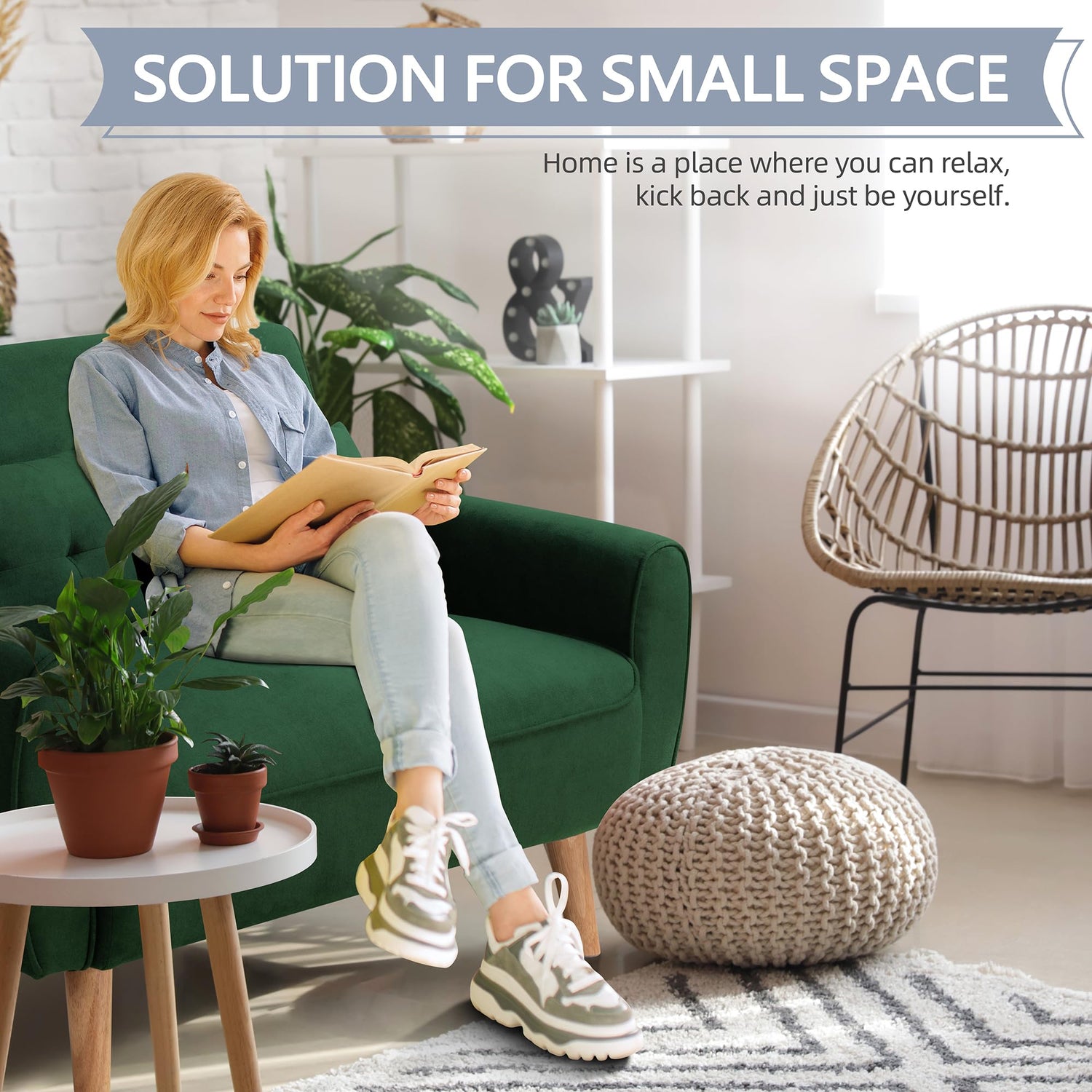 Shintenchi Small Modern Loveseat Couch Sofa, Mid Century Fabric Upholstered 2-Seat Sofa Couch Love Seats Furniture for Small Space,Living Room,Studio,Apartment with 2 Pillows,Green