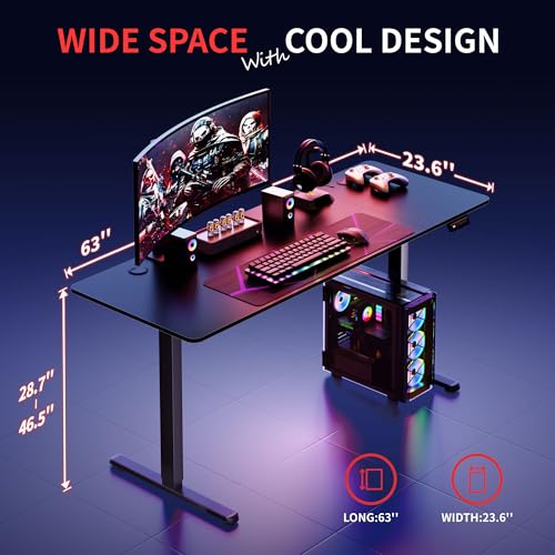 - Ergonomic Design: Our ergonomic standing desk is designed for an excellent home office experience,combining years of innovation with high-quality craftsmanship. The spacious 63” x 24” desktop provides ample room for an organized and ergonomic workspace. With a touch of a button, effortlessly transition between sitting and standing to enhance comfort and productivity throughout the day. Adjustable to your exact height, this desk encourages healthy movement, helping you stay active, focused, and efficient. A perfect addition for those prioritizing wellness and functionality in their workspace.