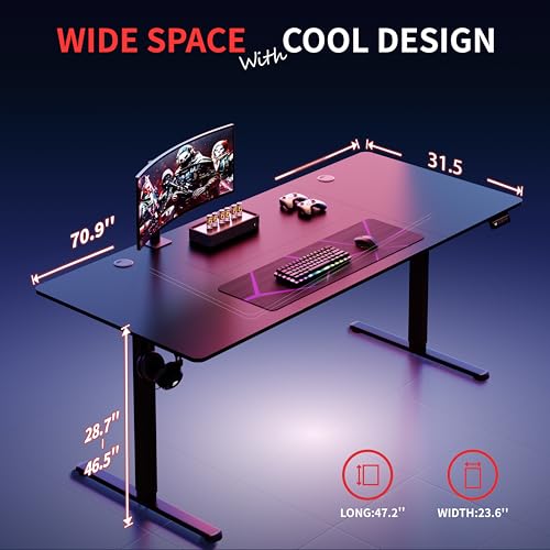 Shintenchi Standing Desk, 71x31 Inch Height Adjustable Electric Sit Stand up Desk, Ergonomic Rising Computer Table, Modern Lift Gaming Desk Workstation for Home Office, Black
