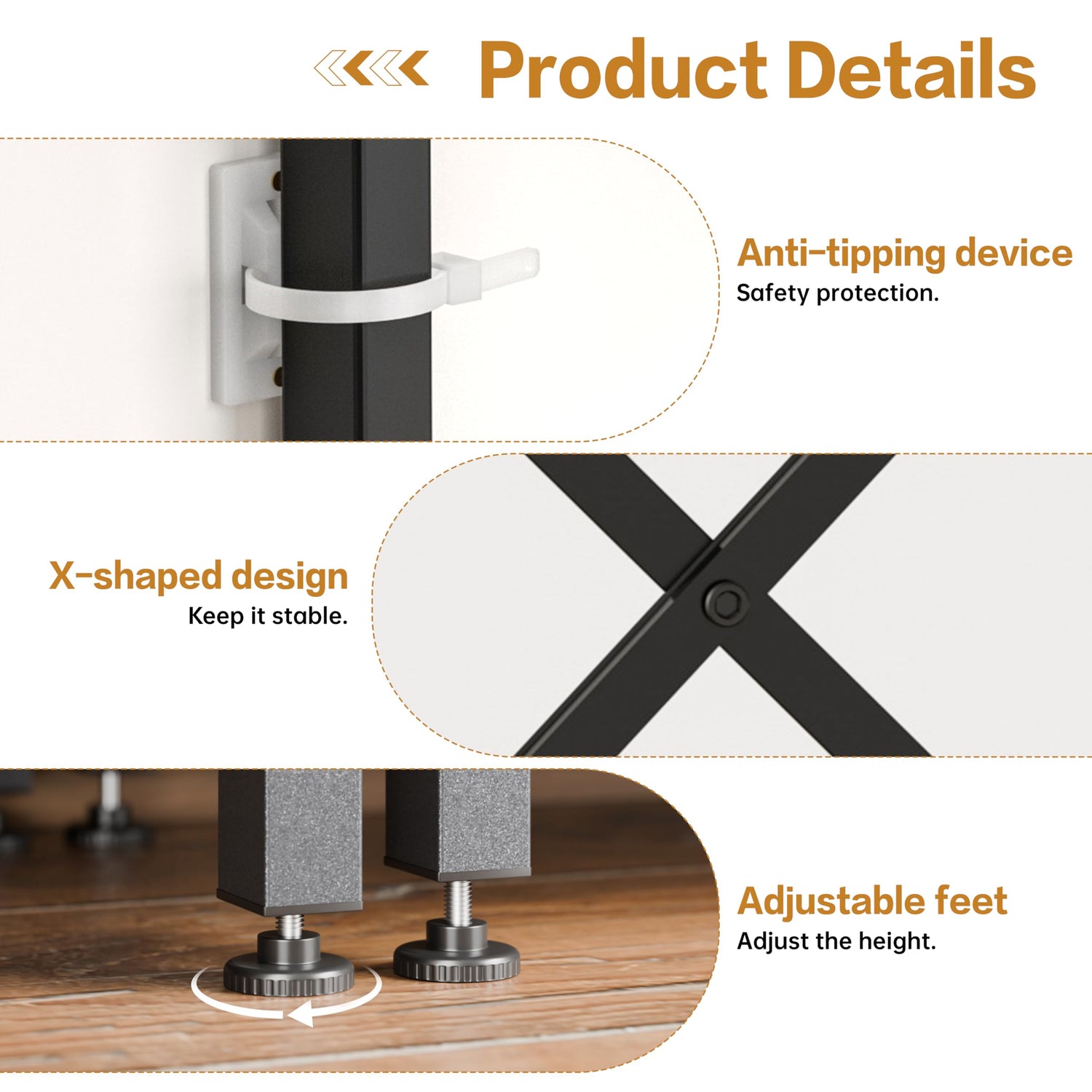 ADJUSTABLE FEET: 8 plastic feet under the legs can be adjusted to accommodate the uneven floor and protect your floor from damage during movement.