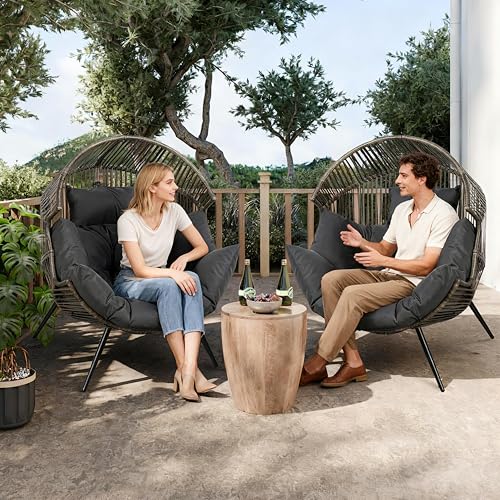 Shintenchi Wicker Egg Chair, Outdoor Rattan Patio Chair with Cushion,Oversized Patio Lounge Chairs with Cushion Egg Basket Chair, Egg Seat for Indoor Living Room Bedroom Outside,Grey