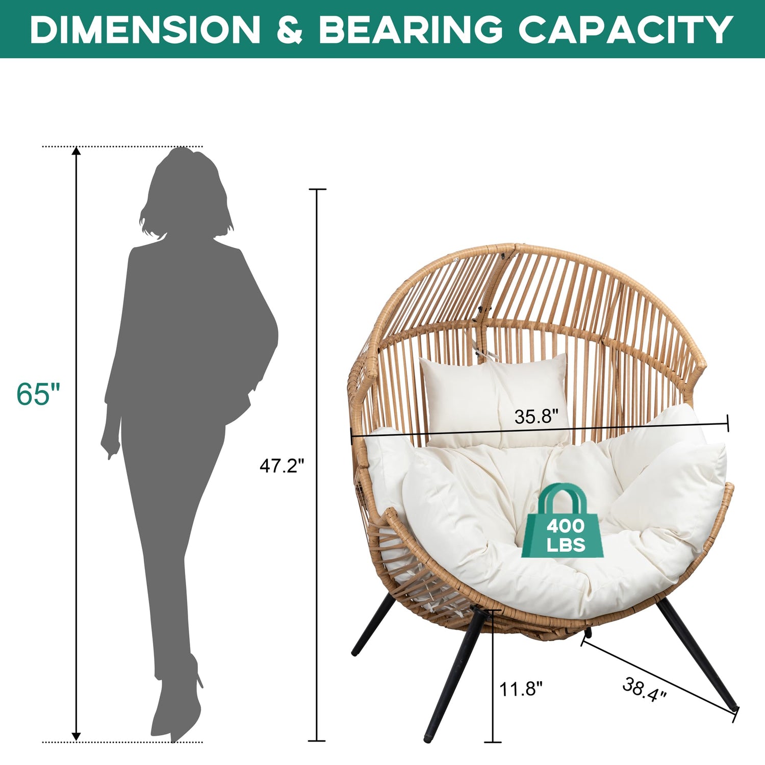 Shintenchi Wicker Egg Chair Outdoor Rattan Patio Chair with Cushion,Oversized Patio Lounge Chairs with Cushion Egg Basket Chair, Egg Seat for Indoor Living Room Bedroom Outside Patio Backyard Balcony