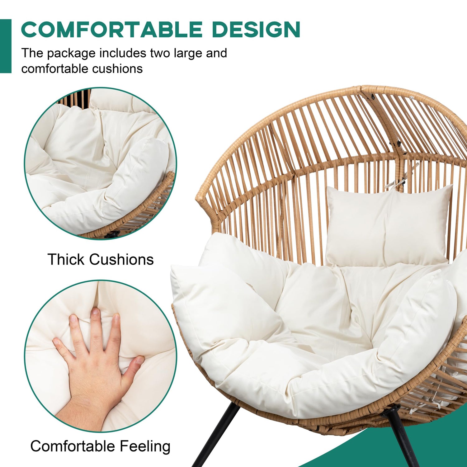 - 【Comfortable Recliner】: With a soft upholstered top, waist pillow and headrest, this basket chair enhances overall comfort, so you can stretch out alone, read a book, or just relax when you need to.