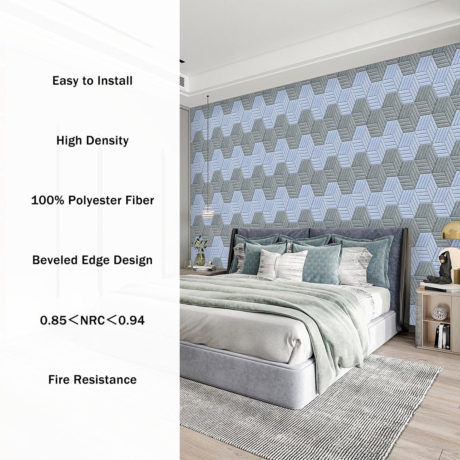 - 【Decorate Your Life】This stylish hexagonal sound insulation board adopts beveled edge design, you can hang this hexagonal soundproof wall panels in a variety of ways and double as a decorative wall artwork in your favorite space. Offering stylish décor without sacrificing any of their soundproofing power.