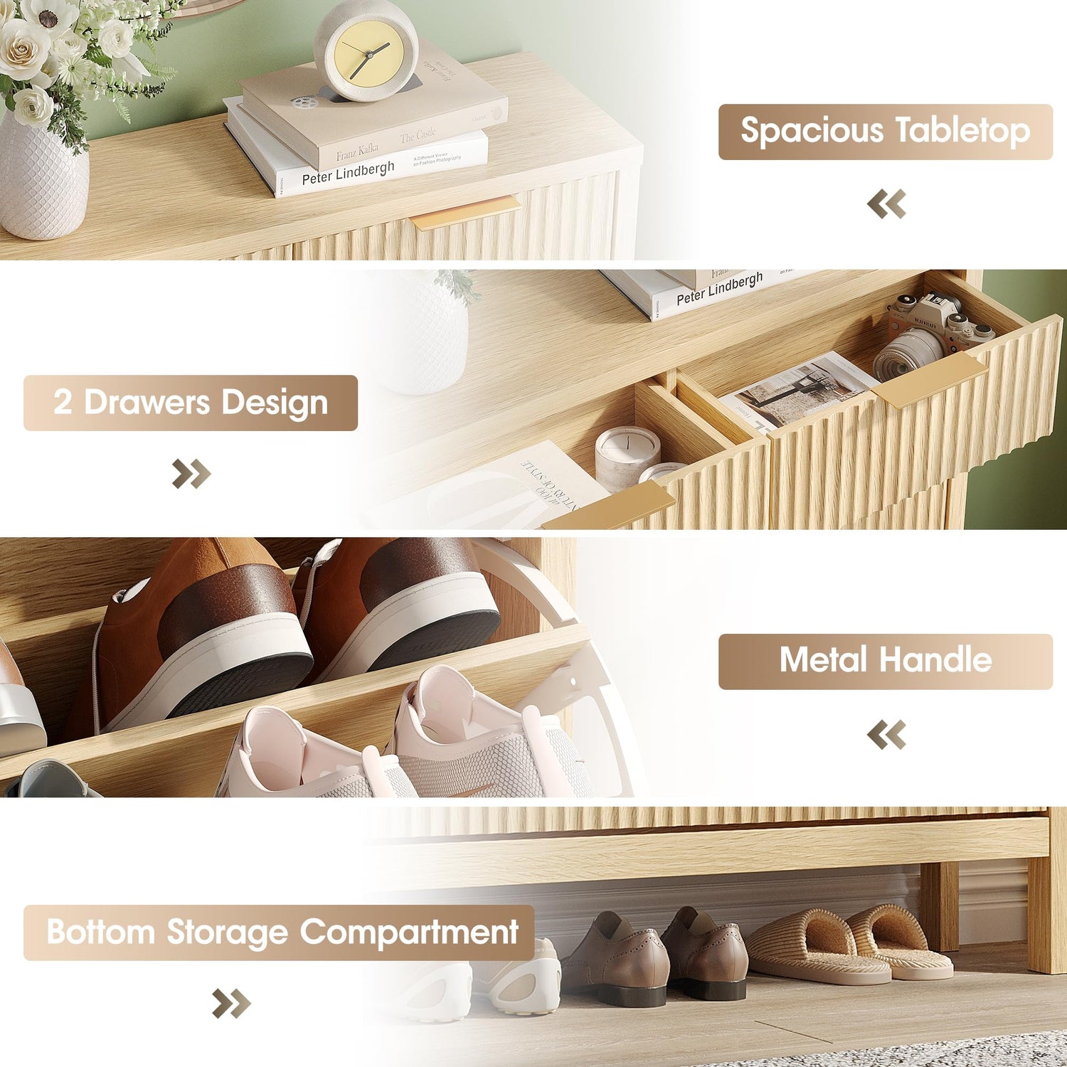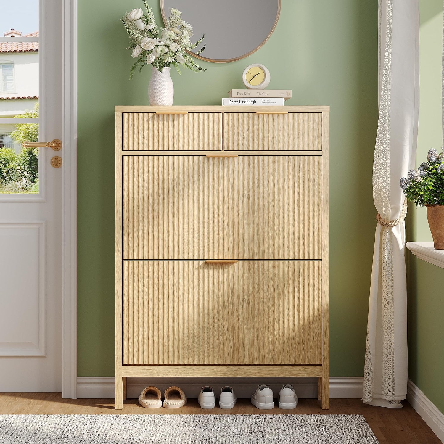 Shoe Storage Cabinet with 2 Flip Drawers,Freestanding Narrow Organizer with Wavy Wood Grain Design Shoe Rack with Adjustable Shelf for Entryway,Hallway,Living Room,Front Door Entrance,Oak Natural