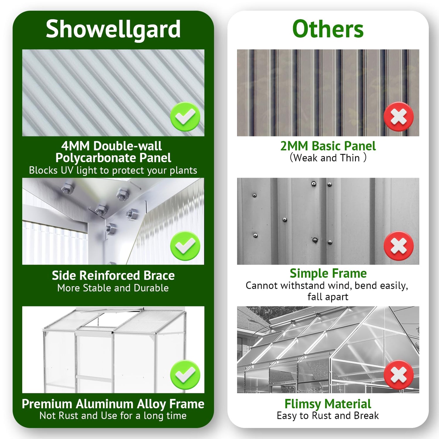 - 【MULTI-FUNCTION Space】For a first-time or seasoned home gardener, Showellgard Heavy-duty Greenhouses can create a warm environment and protect plants against rough weather. Suitable sized to fit in the backyard, garden, our greenhouse is ideal for growing a wide variety of vegetables,plants, flowers and herbs, offering you plenty of space for plant preparation and growth. Transform your greenhouse into a functional living space by adding furniture