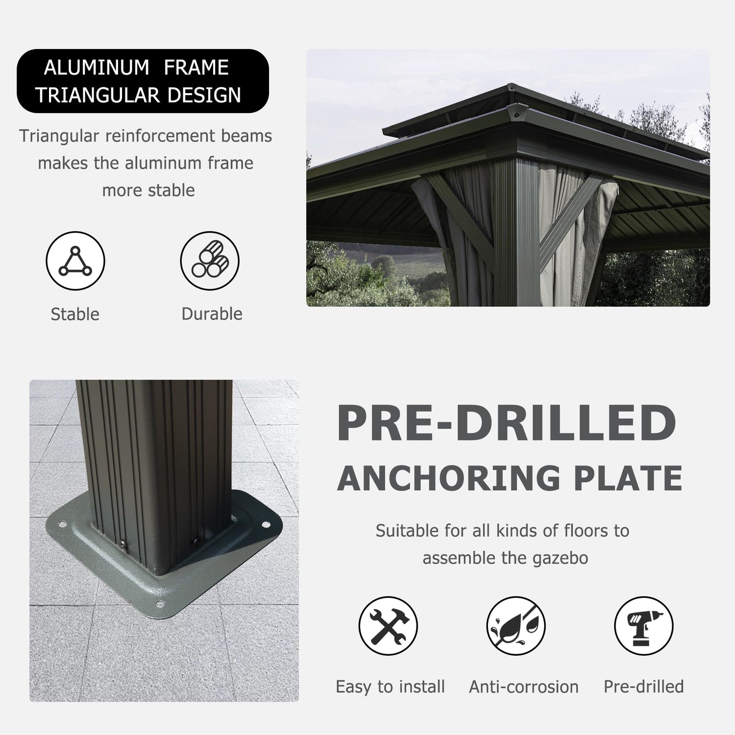 SHPAI Hardtop Gazebo 10x14FT, Aluminum Outdoor Gazebo with Galvanized Steel Double Roof Canopy, Curtains and Nettings, Metal Gazebo Permanent Pavilion for Patio Wedding, Party, Outdoor Dining, Gray