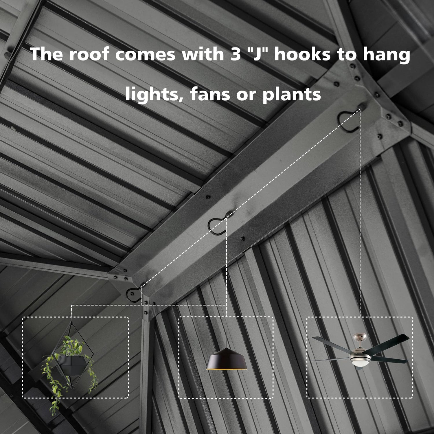 - Ventilated Double Top Roof Design- The SHPAI outdoor gazebo features a ventilated double top roof for optimal air circulation, keeping the interior cool and comfortable on hot days. The integrated netting keeps bugs out, and the sloped roof allows rain and snow to flow off easily, ensuring long-lasting durability.
