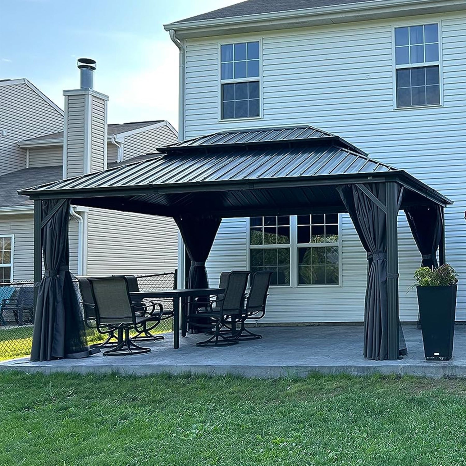 - Includes Privacy Curtains & Bug Netting- The aluminum gazebo features a double-track system and double-sided zippers for easy sliding. The bug netting ensures good ventilation and clear views, while the privacy curtains create a safe, comfortable space for your family and keep the area warm.