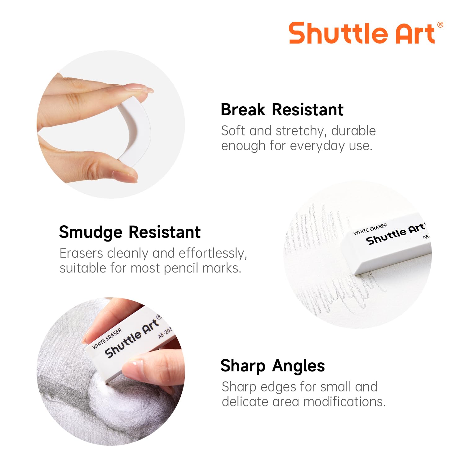 - ERASE CLEANLY & SMUDGE RESISTANT: Shuttle Art erasers can erase most types of pencil marks without smudging and soft material will not paper or leave marks behind, suitable for most situations like tests, school and office writing, designing, and sketching