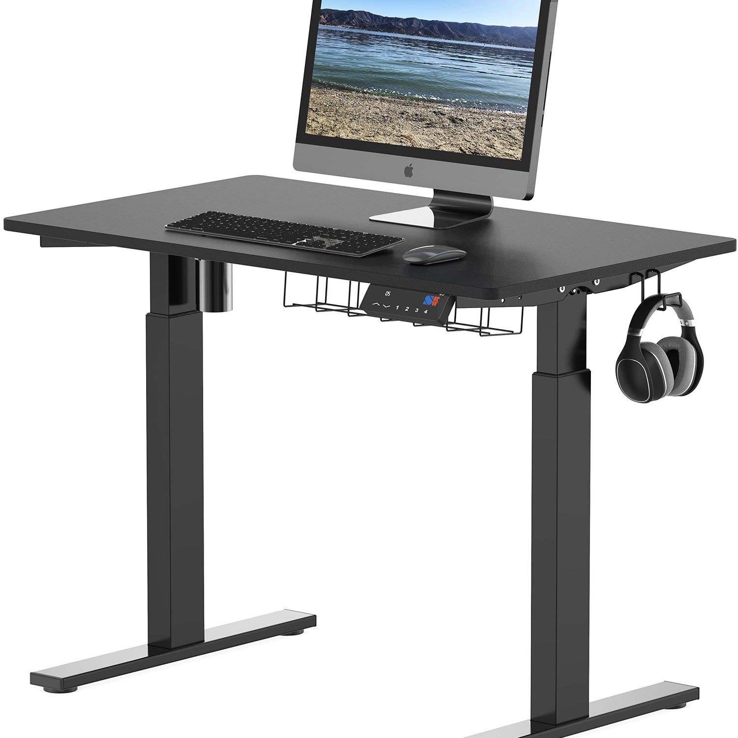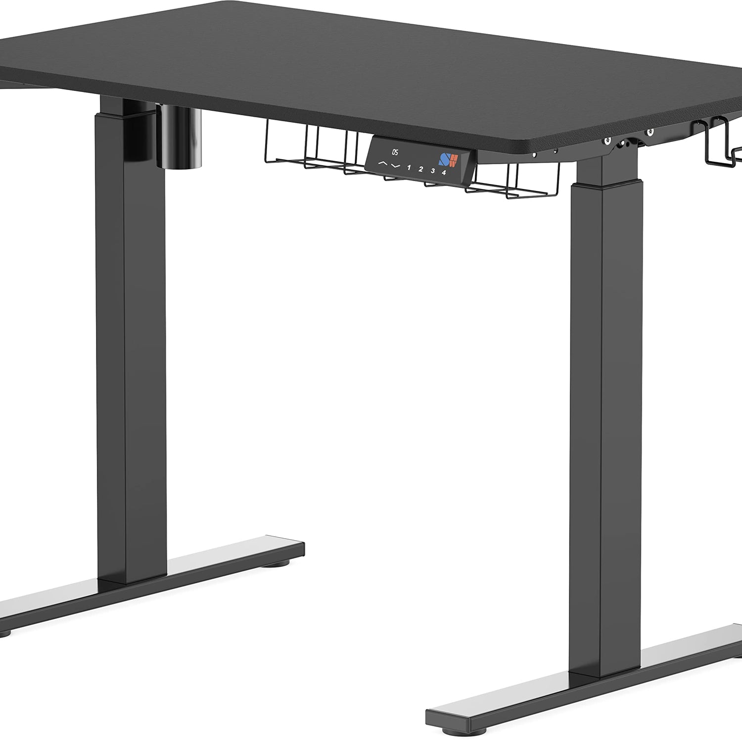 SHW 40-Inch Electric Height Adjustable Standing Desk with Memory Preset and Cable Management Tray, Black
