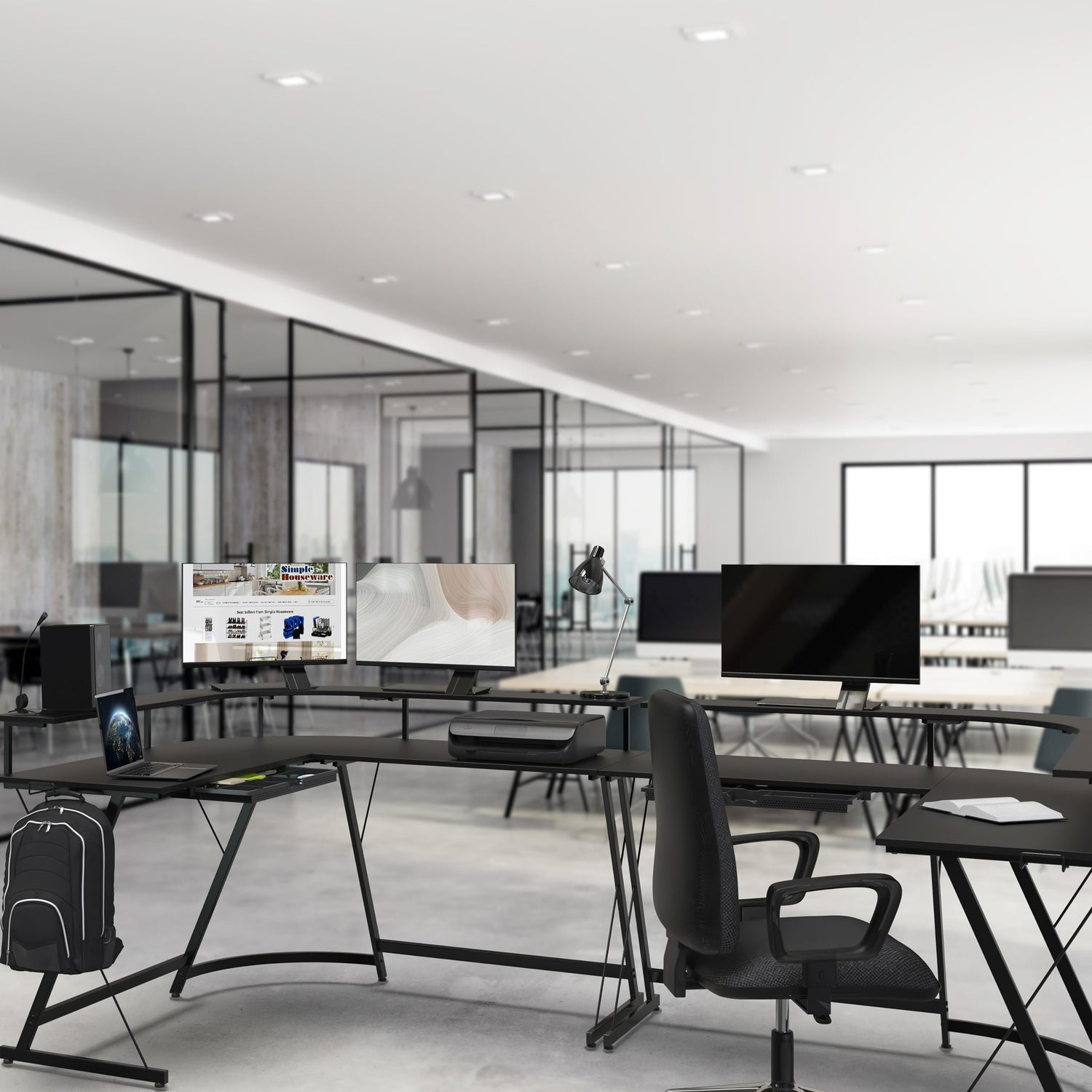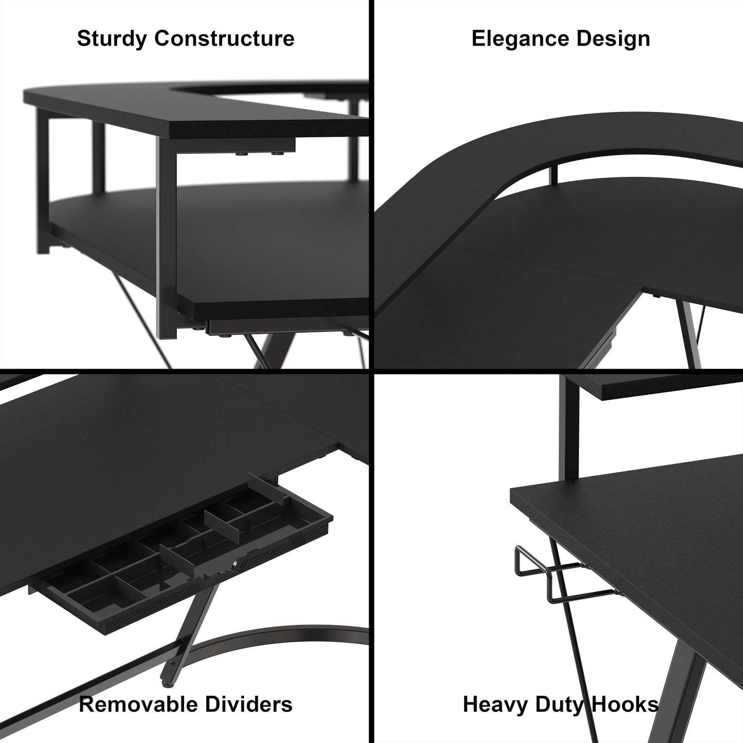 SHW L Shaped Gaming Desk with Full Around Monitor Stand and Drawer, Black