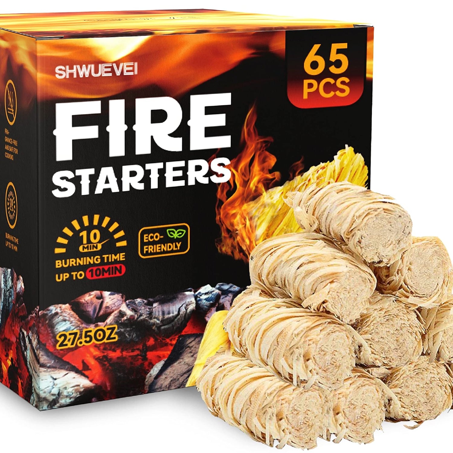 Shwuevei 65 pcs Fire Starter - Natural Fire Starters for Fireplace, Pellet Stove & Wood, Fire Pit, Smoker, BBQ, Chimney, Pizza Oven - Fire Starters for Grill, Charcoal Starter