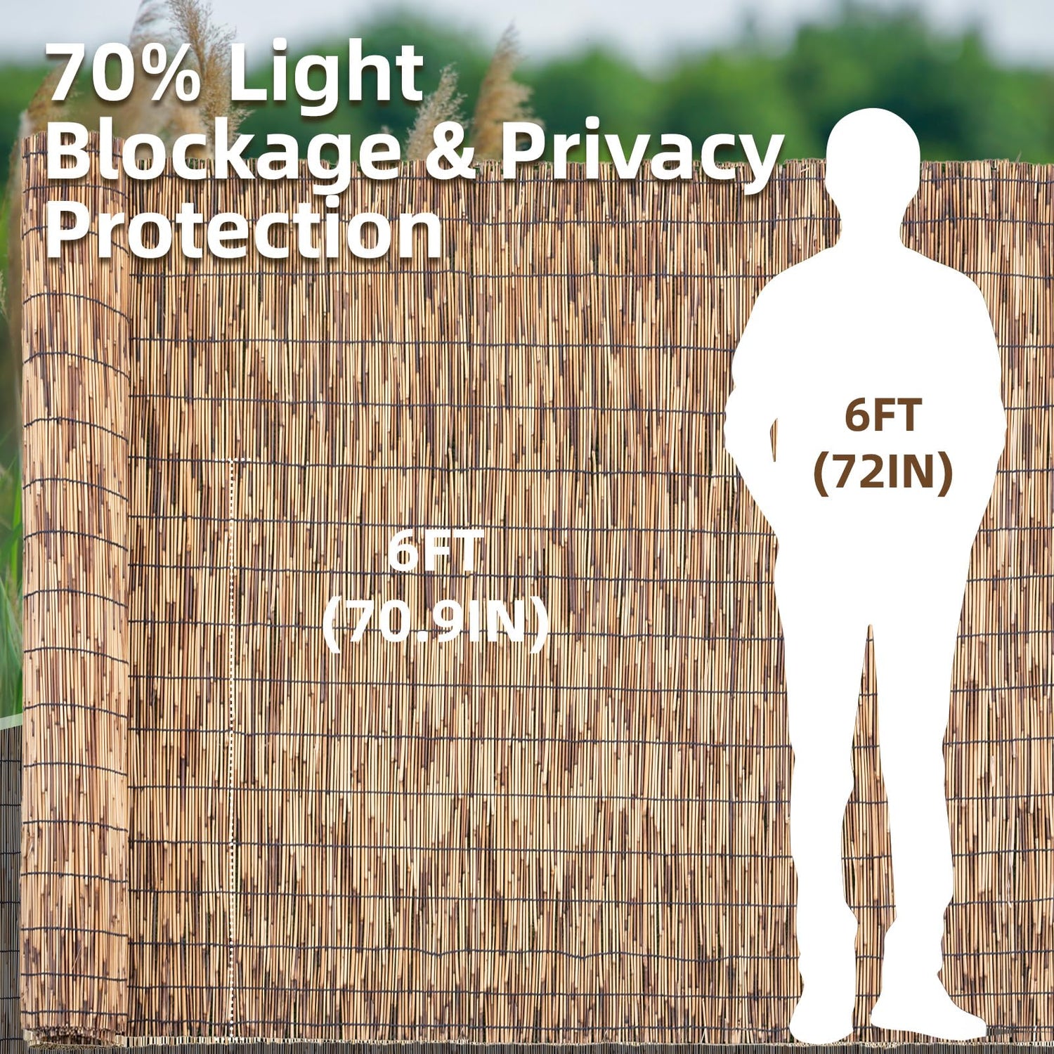 - Material and Craftsmanship: Each reed screen is meticulously hand-selected, and the garden reed fencing is woven together with cotton strings. The bamboo reed fencing can block 70% of the sun's heat, providing more shade and keeping the area cool throughout the summer