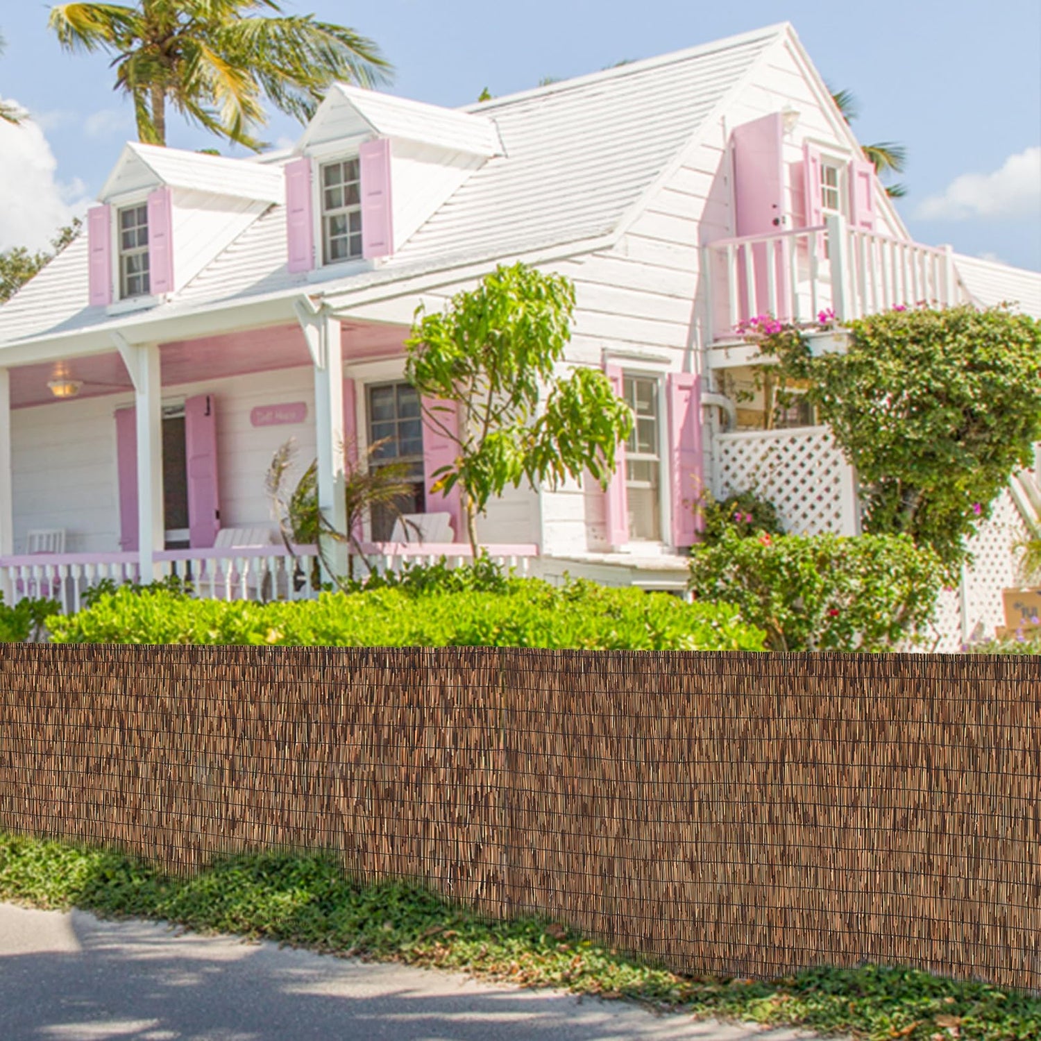 SHYDZYYC Brown 6FT X 16.4FT Reed Fencing Roll, Balcony Privacy Reed Shade Bamboo Fencing Garden Fence Border, Wind Block Sunshade Fence Screen for Outdoor Yard Patio Flower Bed Edge