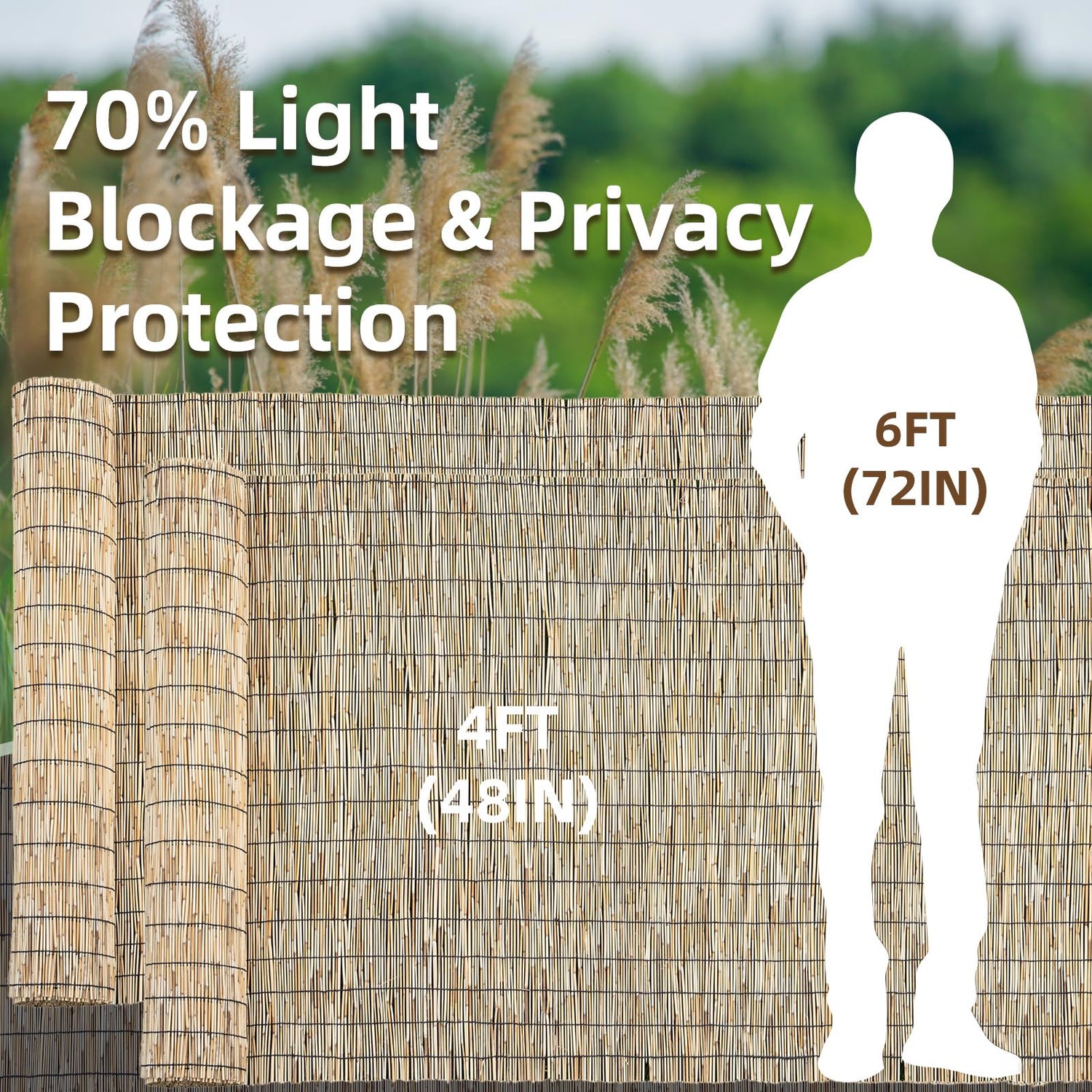 - Material and Craftsmanship: Each reed screen is meticulously hand-selected, and the garden reed fencing is woven together with cotton strings. The bamboo reed fencing can block 70% of the sun's heat, providing more shade and keeping the area cool throughout the summer