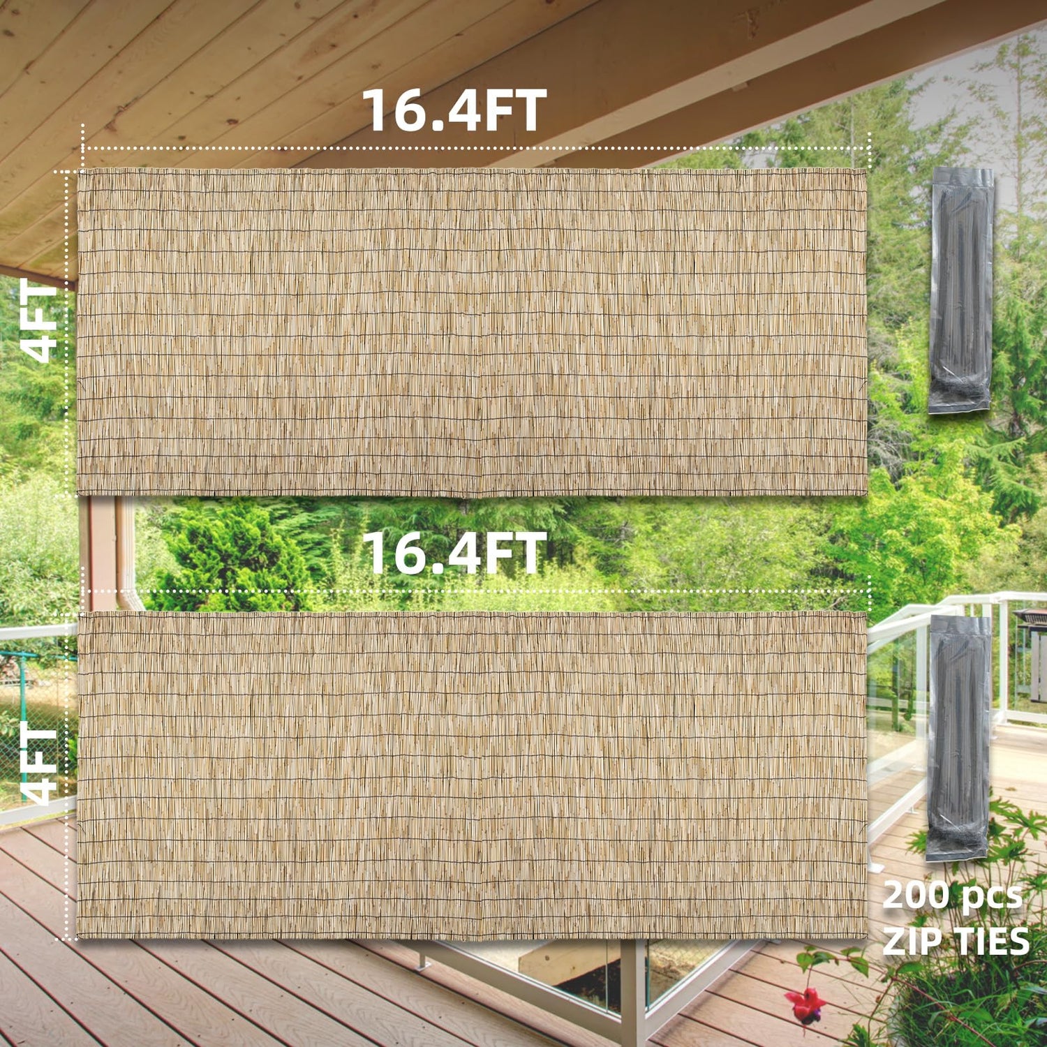 - Product Features: The bamboo reed fence rolls are 2 Pack 4 feet high and unfold to a length of 16.4 feet. They are designed to conceal unsightly bins, fences, or other objects, while also enhancing privacy for backyards, balconies, patios, or swimming pools