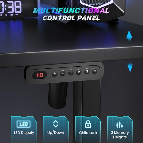 - Customized Sit Stand Desk : The reliable motor operates quietly (under 45 dB)and smoothly, all your things stay steady&secure in motion. The intuitive control panel allows you to preset 3 preferred heights, switch between sitting and standing positions has never been easier. Child lock for total peace of mind.