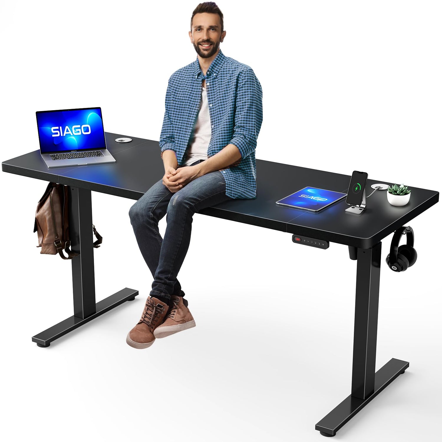 SIAGO Electric Standing Desk Adjustable - 63 x 24 Inch Sit Stand up Desk with Cable Management - 3 Memory Preset Adjustable Height Desk Computer Home Office Desk