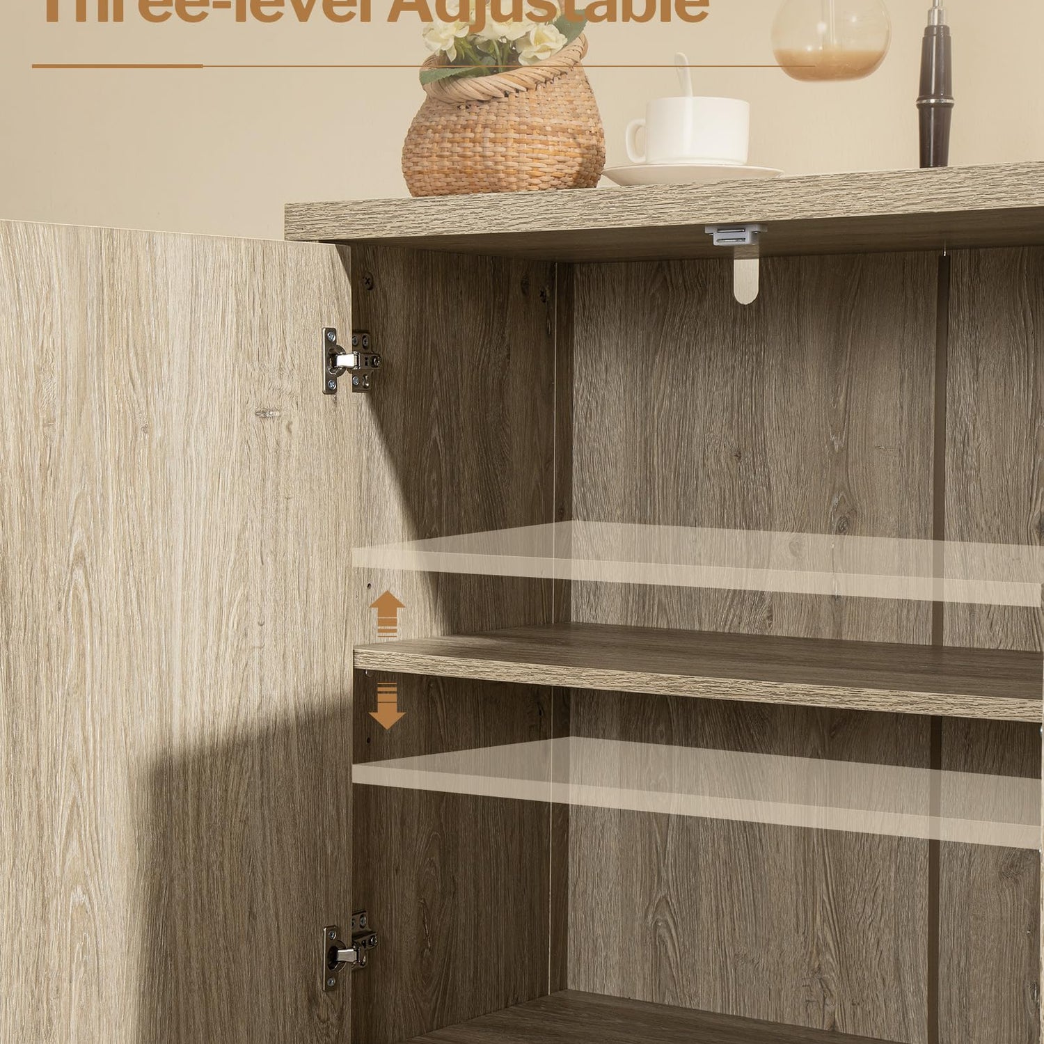 - 【Practical Features】With three-level adjustable shelves, a weight capacity of 55 lbs for the interior, and 66 lbs for the top surface, this buffet cabinet provides ample storage space for all your cherished items.