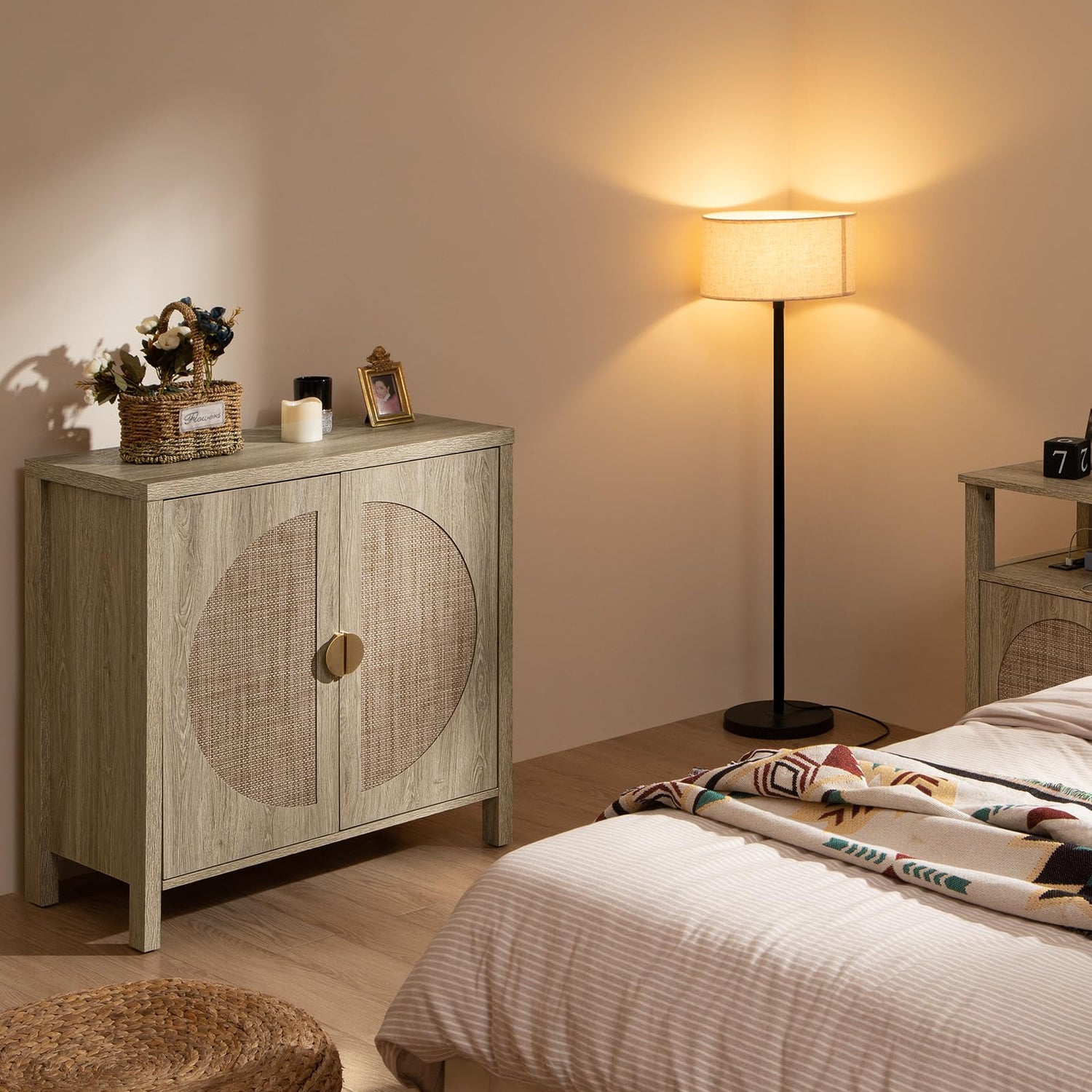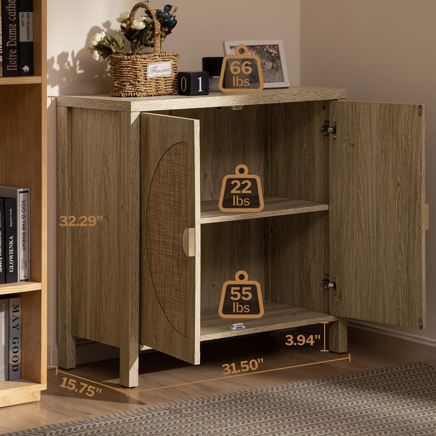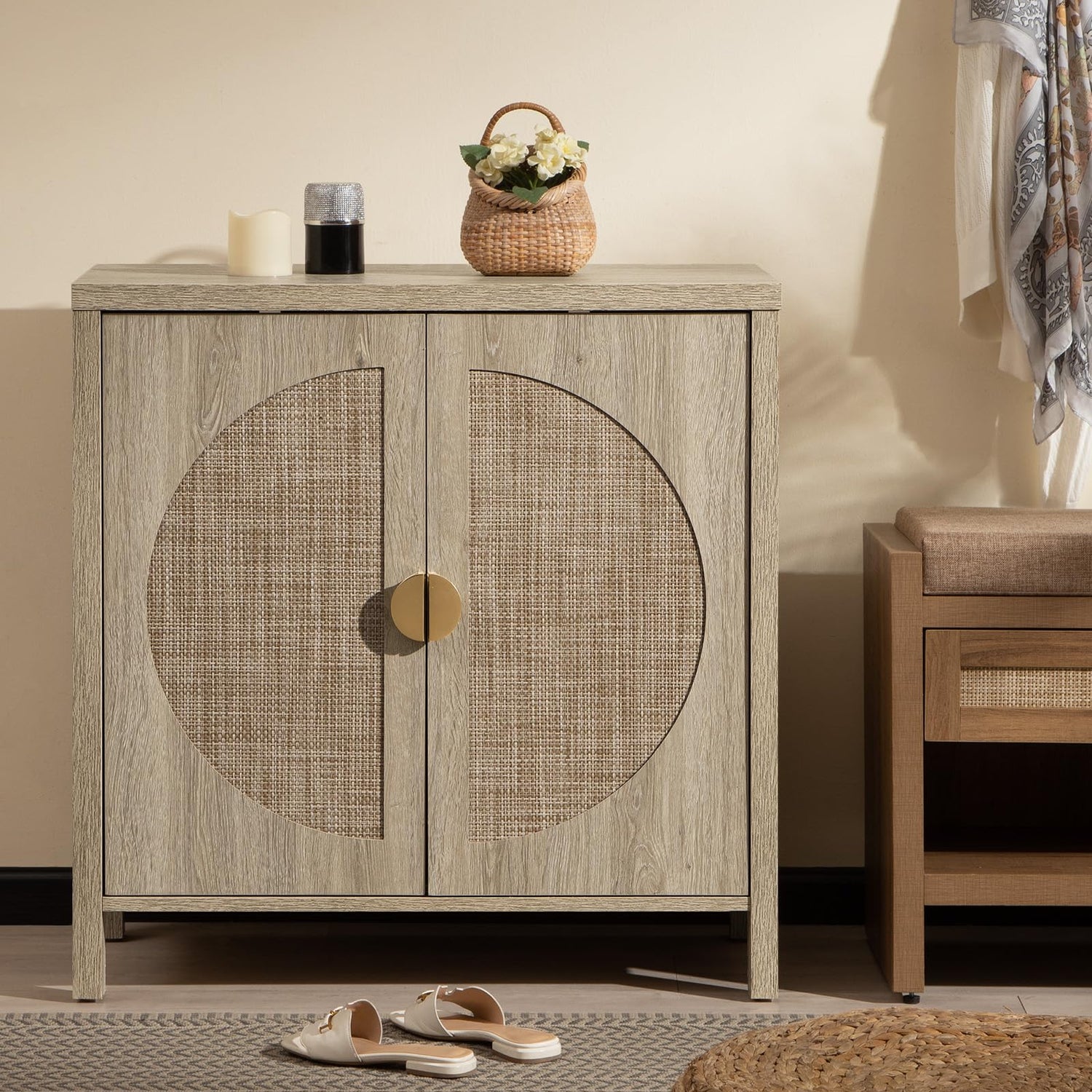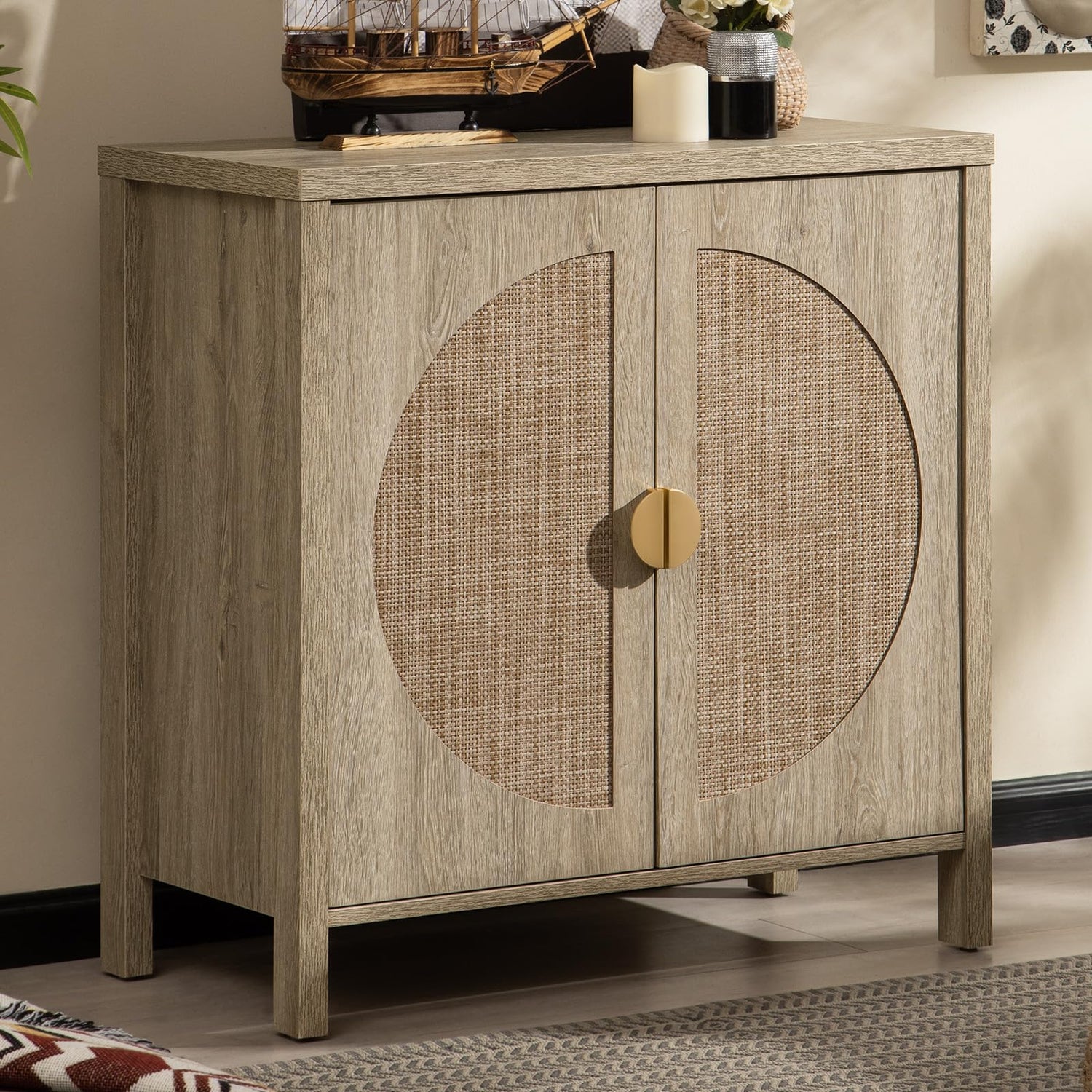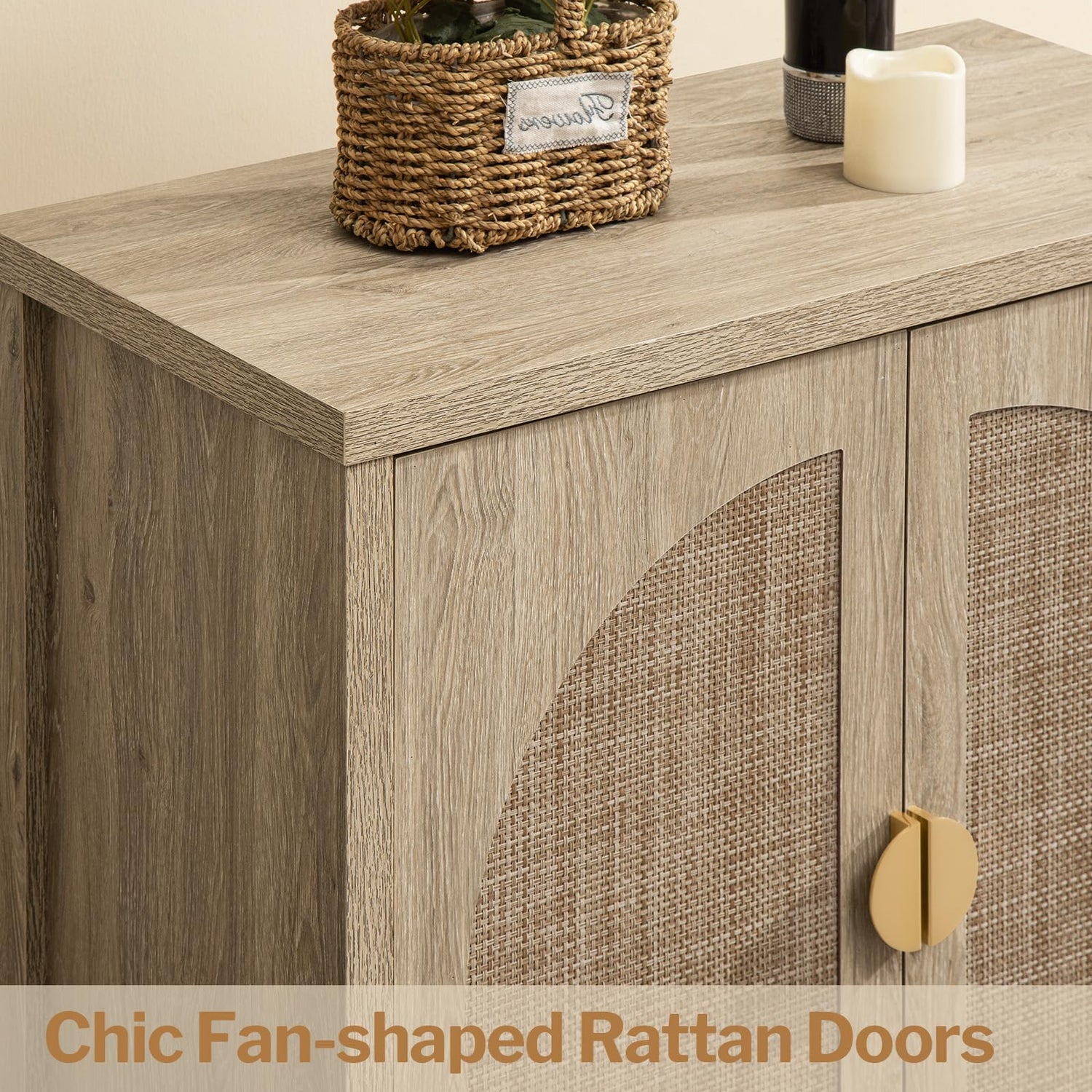 SICOTAS Accent Wood Storage Cabinet with Rattan Doors, Sideboard Buffet Cabinet with Adjustable Shelves, Multifunctional Console Table Rattan Credenza for Dining Room, Living Room, Entryway
