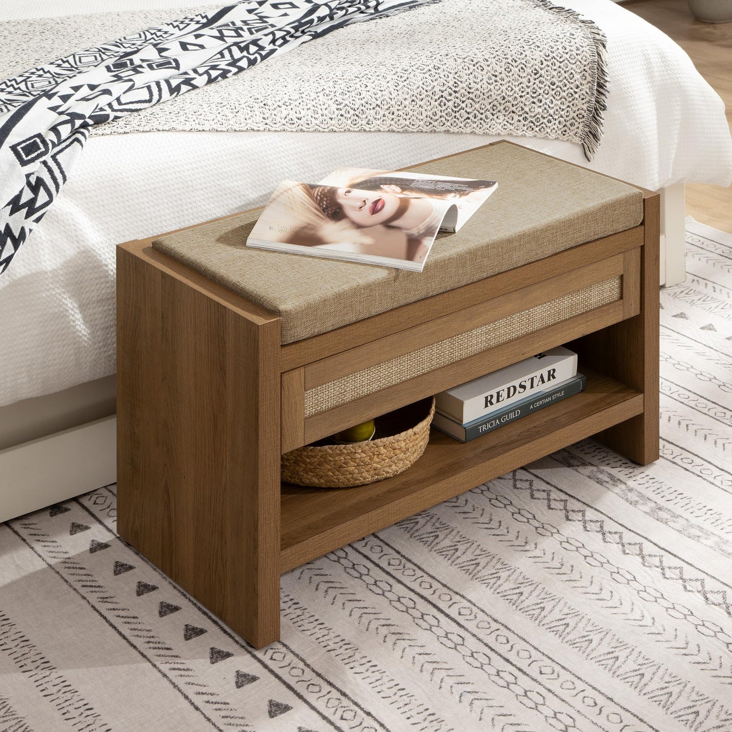 - 【Enhance Your Room with Farmhouse Charm】This shoe bench adds coziness and charm to any room with its rattan elements and wood grain finish. Its timeless design effortlessly blends into various decors, making it ideal for entryways and bedrooms.