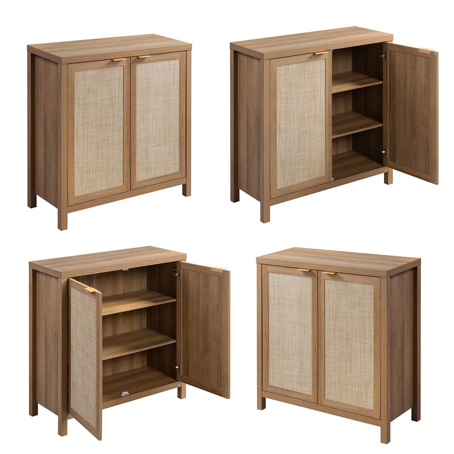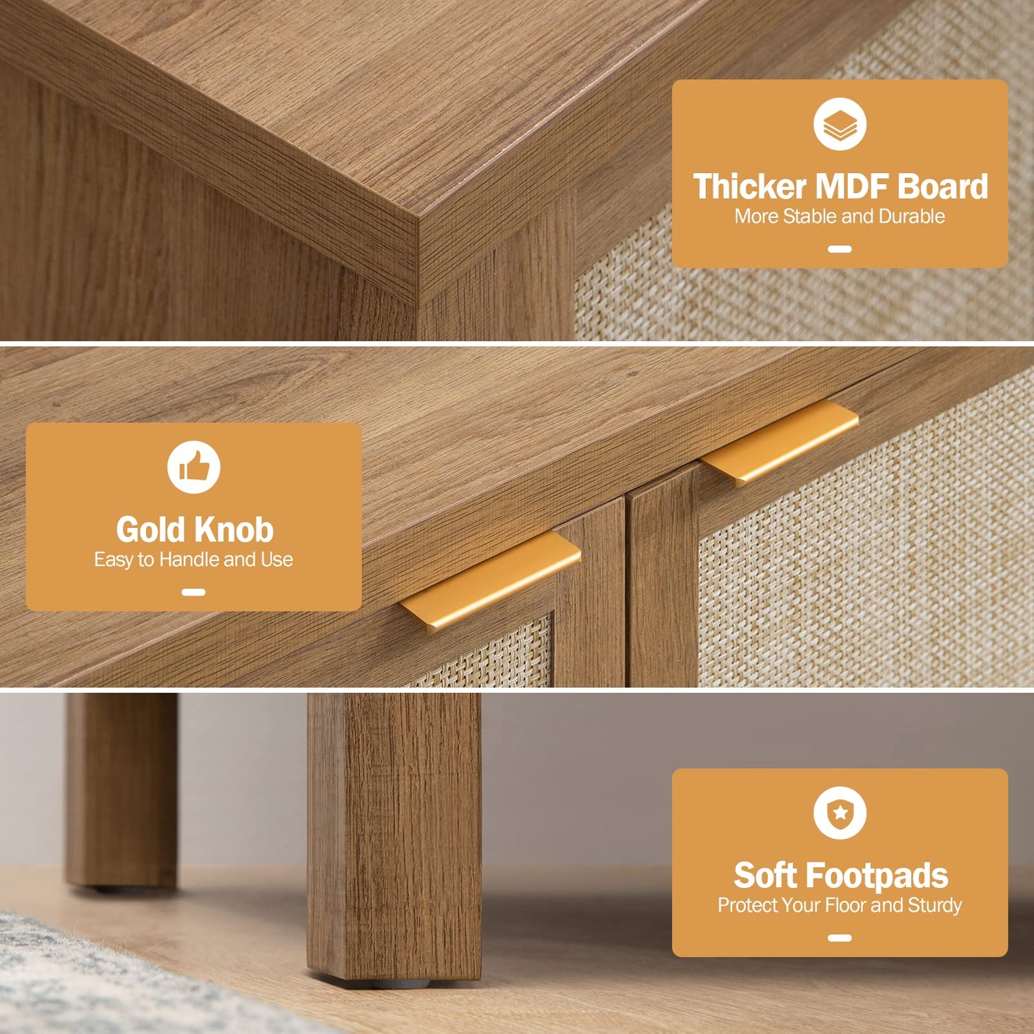 - BOHO FARMHOUSE SIDEBOARD FOR HOME - Aesthetic and practical storage cabinet featuring a realistic-looking rattan design. This buffet cabinet boasts 2 adjustable storage shelves, a hidden golden handle, and a thickened wood board for added rustic style and stability.
