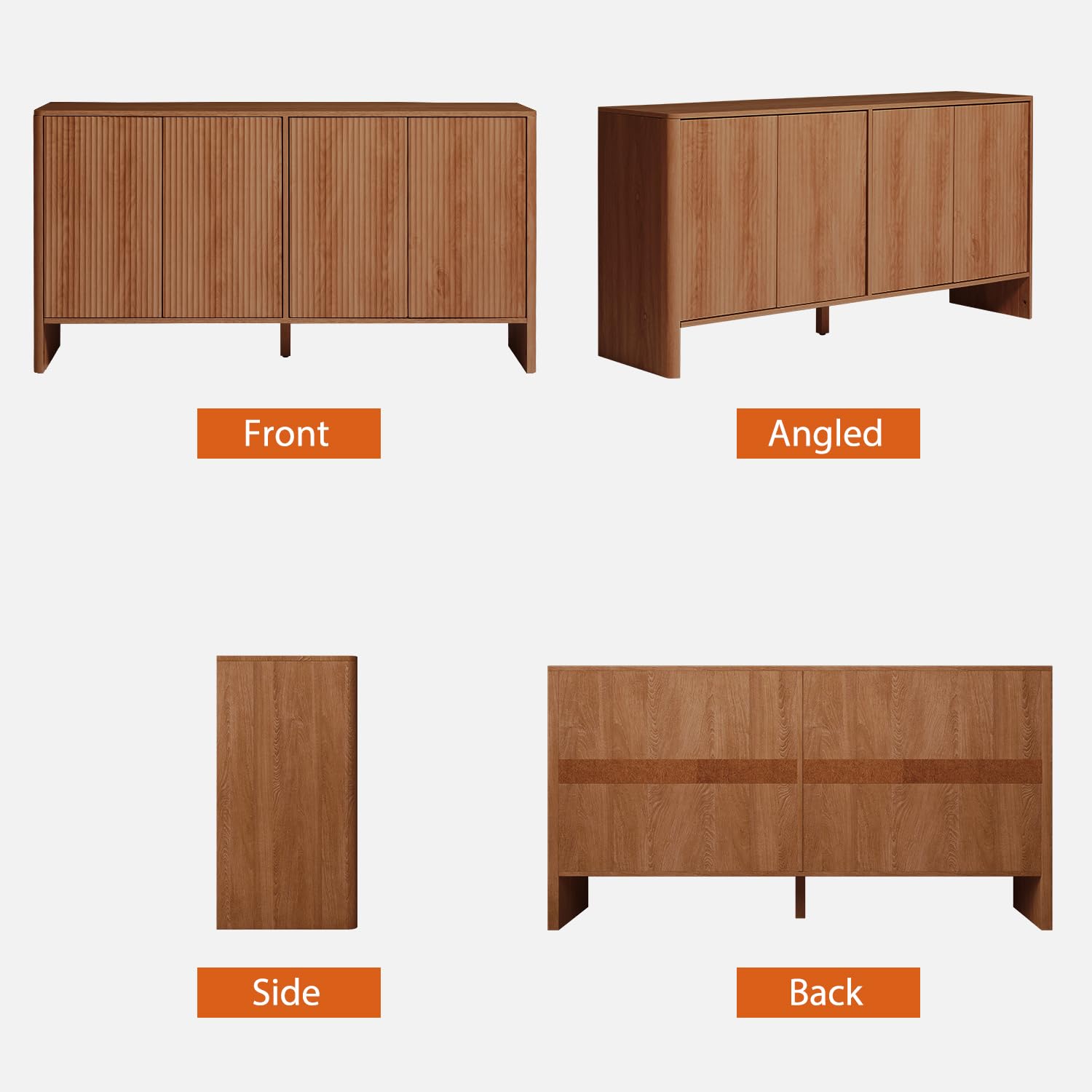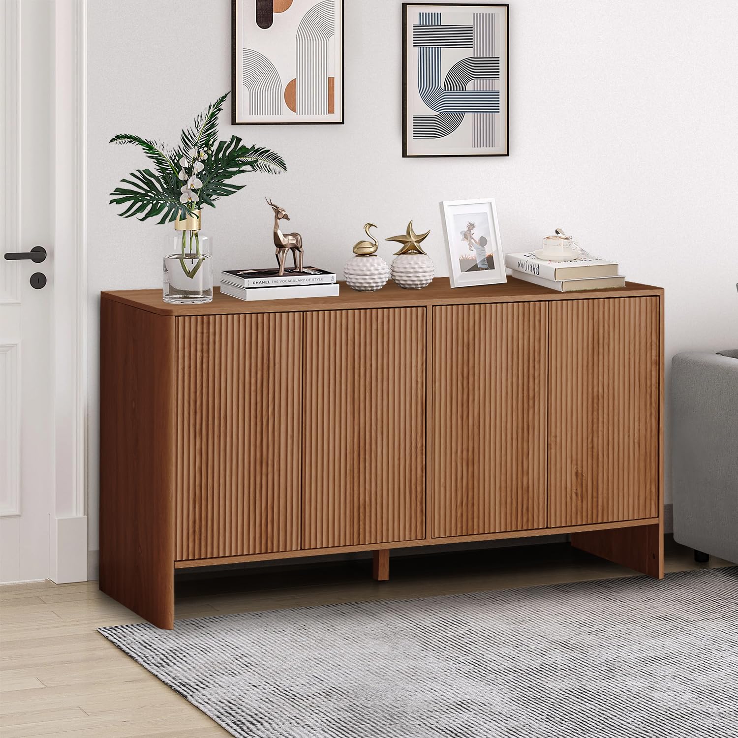 Sideboard Storage Cabinet with Doors and Shelves, Buffet Cabinet with Storage, Credenza Storage Cabinet for Kitchen, Wooden Fluted Cabinet for Bedroom/Entryway, under TV Cabinet with Storage - Walnut