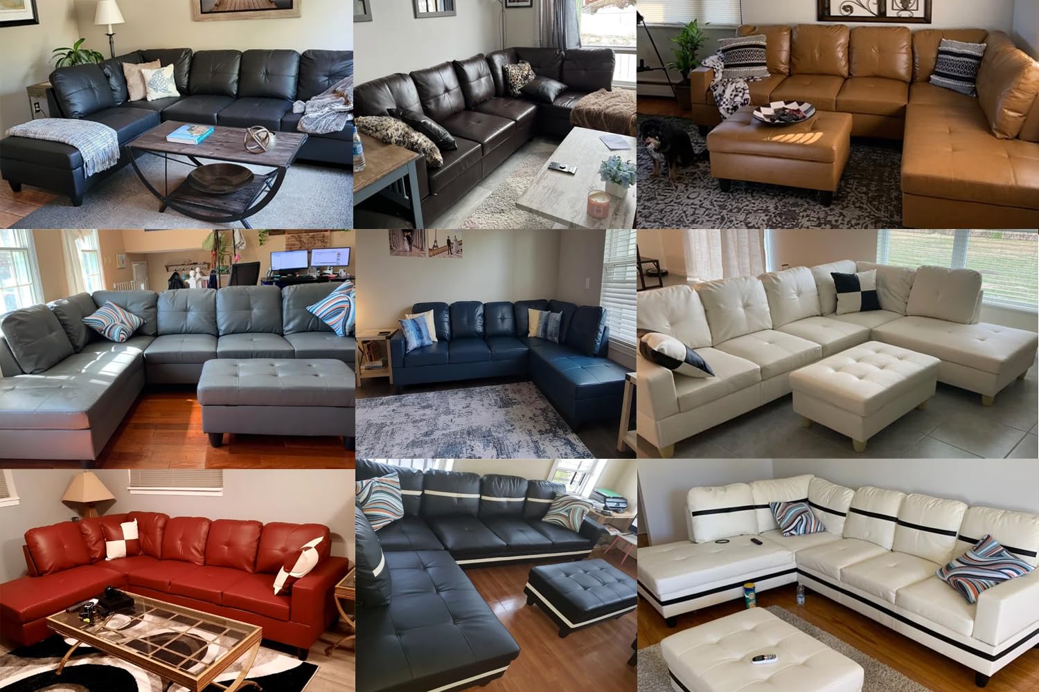 - Sofas for Living Room: Faux Leather Modern L-shaped Sectional Couch Set. Multiple sofa set options, let you get all the sofa you want at once.