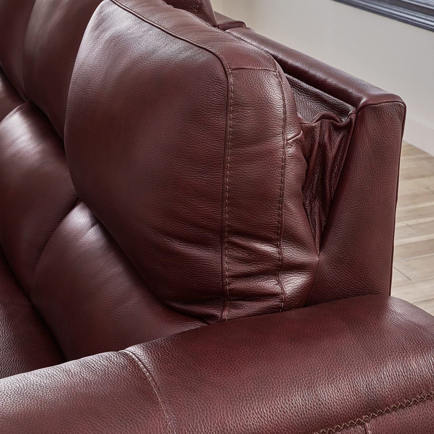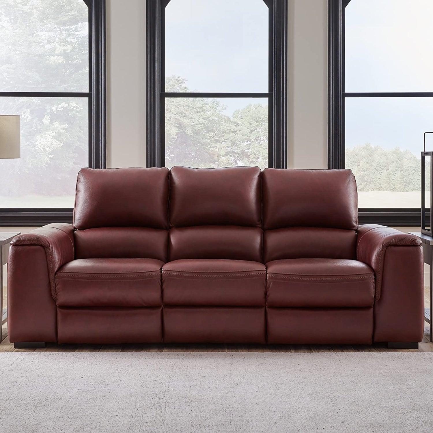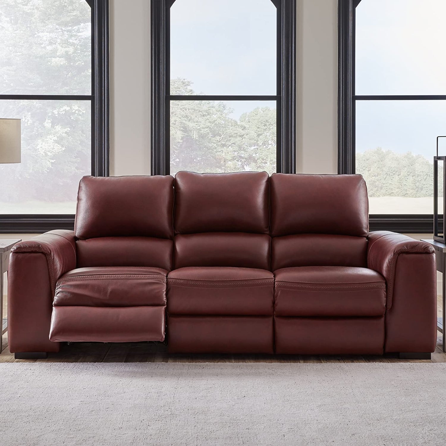- POWER RECLINING SOFA: Impressive in scale while keeping an air of refinement, this spacious couch stuns with soft, supple upholstery in garnet