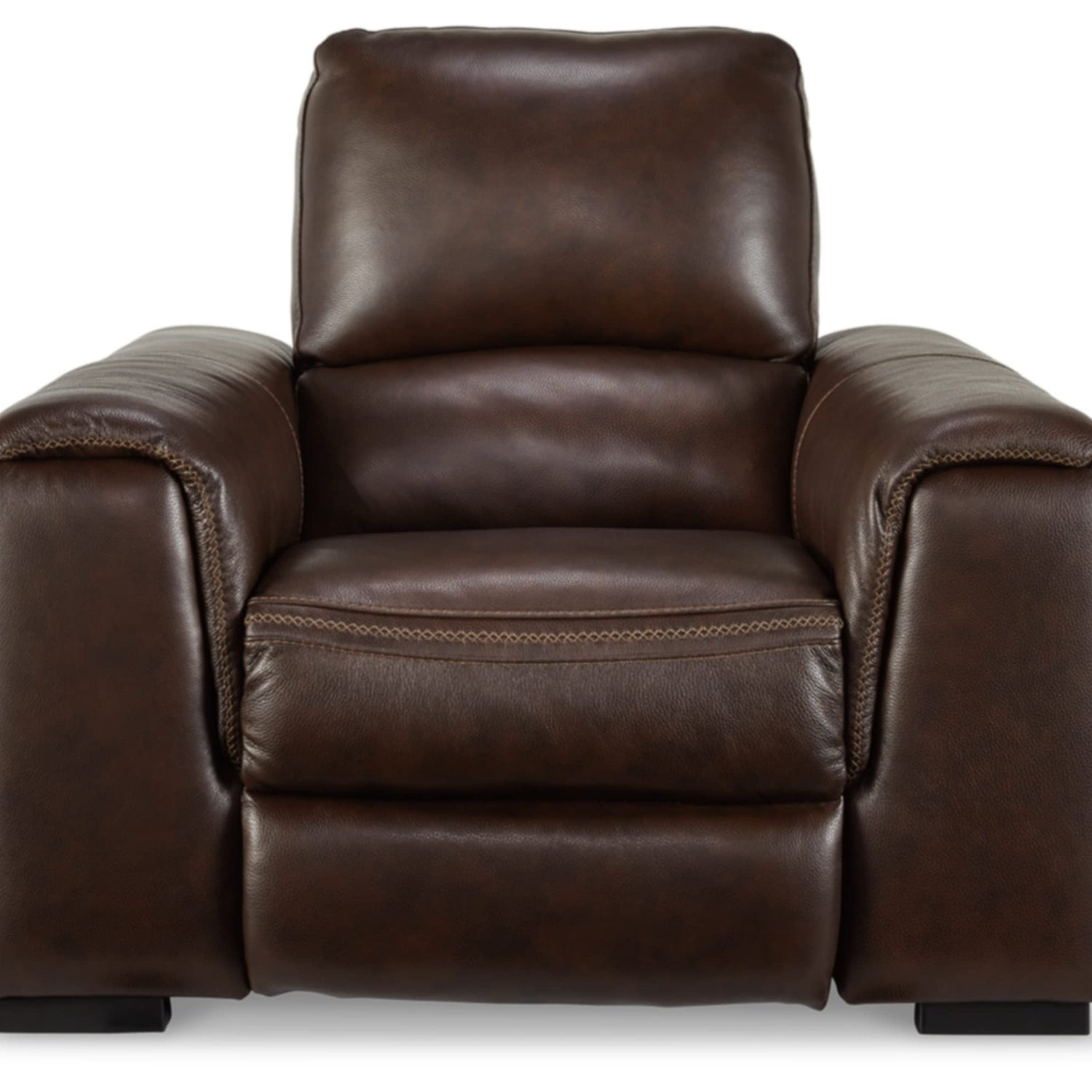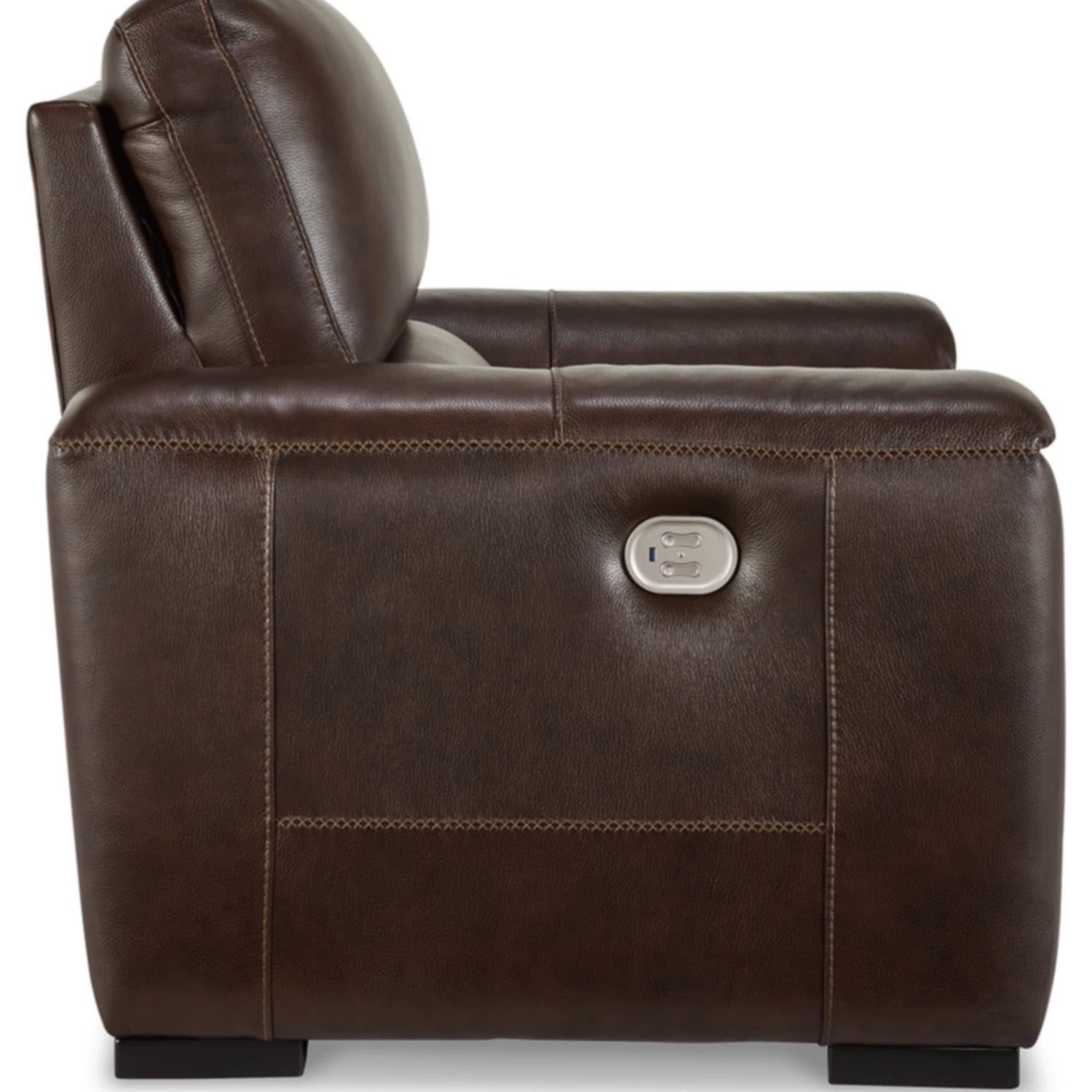 Details: Impressive in scale while keeping an air of refinement, this power recliner stuns with soft, supple leather match upholstery in walnut. Sink into real leather in the seating area and inside back while catering to your comfort with one-touch power reclining and an adjustable headrest. Complete with USB charging, this recliner makes a surefire statement in your contemporary living room. If you need relaxation in a big way, we have an incredible selection of recliners just for you. Style is just as important as comfort when it comes to picking out a modern recliner—that’s why we offer a vast array of designs, fabrics and colors, along with the newest features.