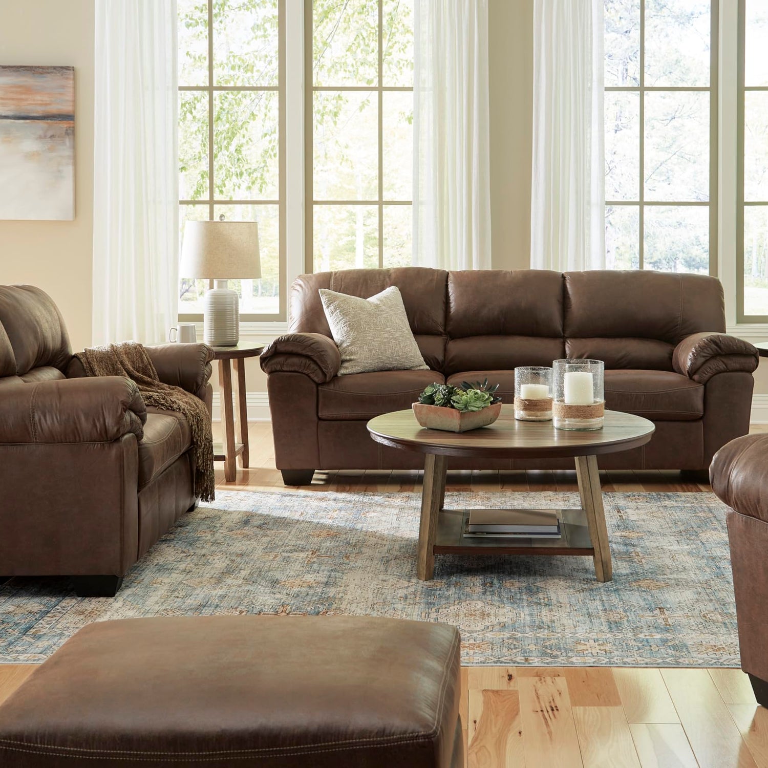 - COFFEE BROWN FINISH: Bathed in a rich, multi-tonal brown color, this easy-to-match loveseat truly makes a bold statement in any home