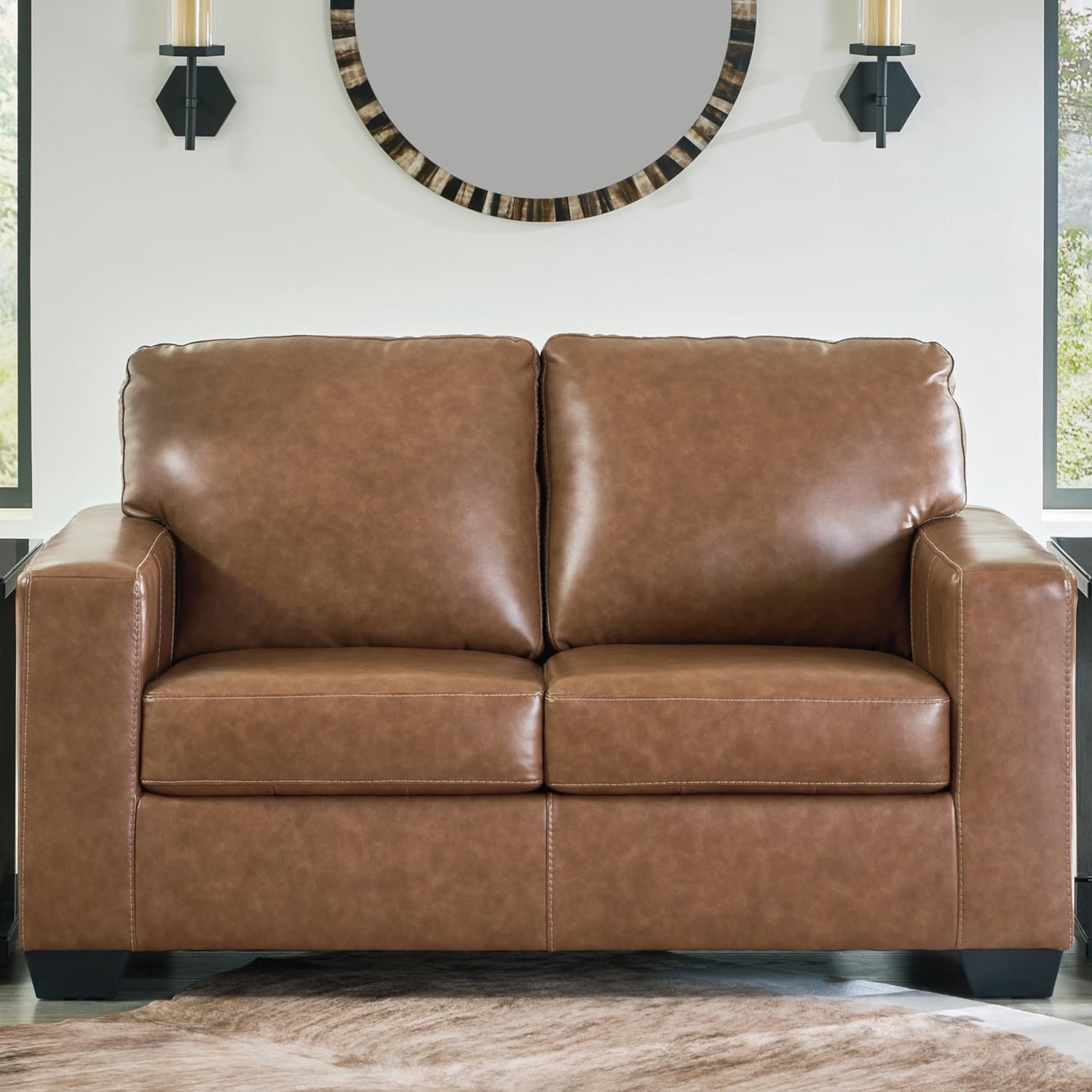 Signature Design by Ashley Bolsena Contemporary Leather Match Loveseat, Dark Brown