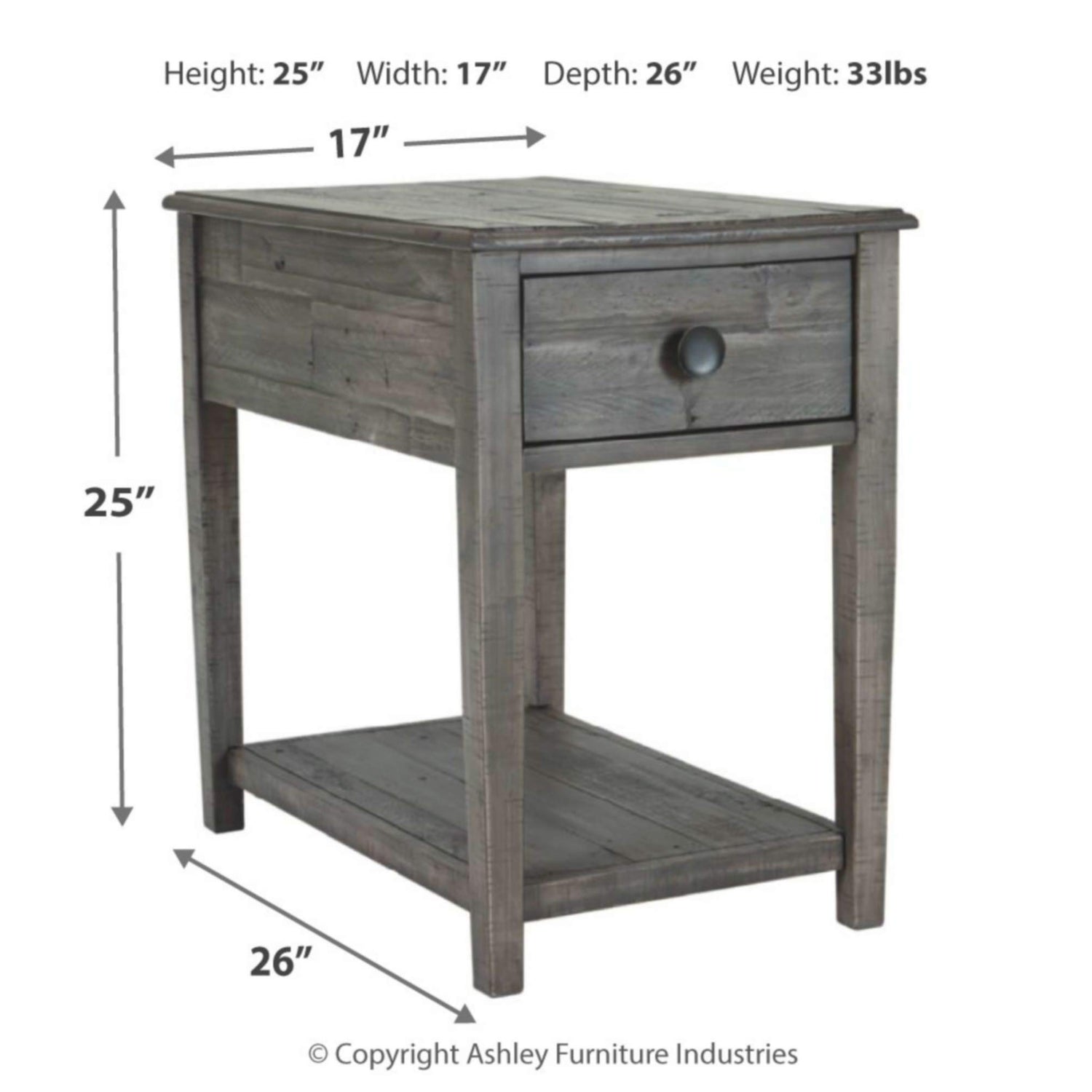 Signature Design by Ashley Borlofield Farmhouse Rectangular End Table with Drawer, Gray