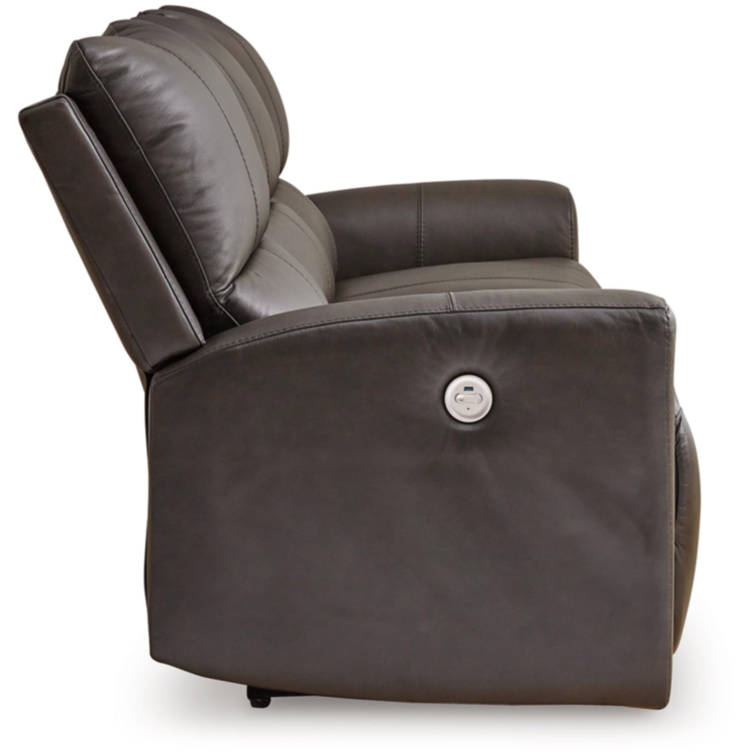 Signature Design by Ashley Boxmere Modern Leather Match Power Reclining Sofa with USB Ports, Dark Brown