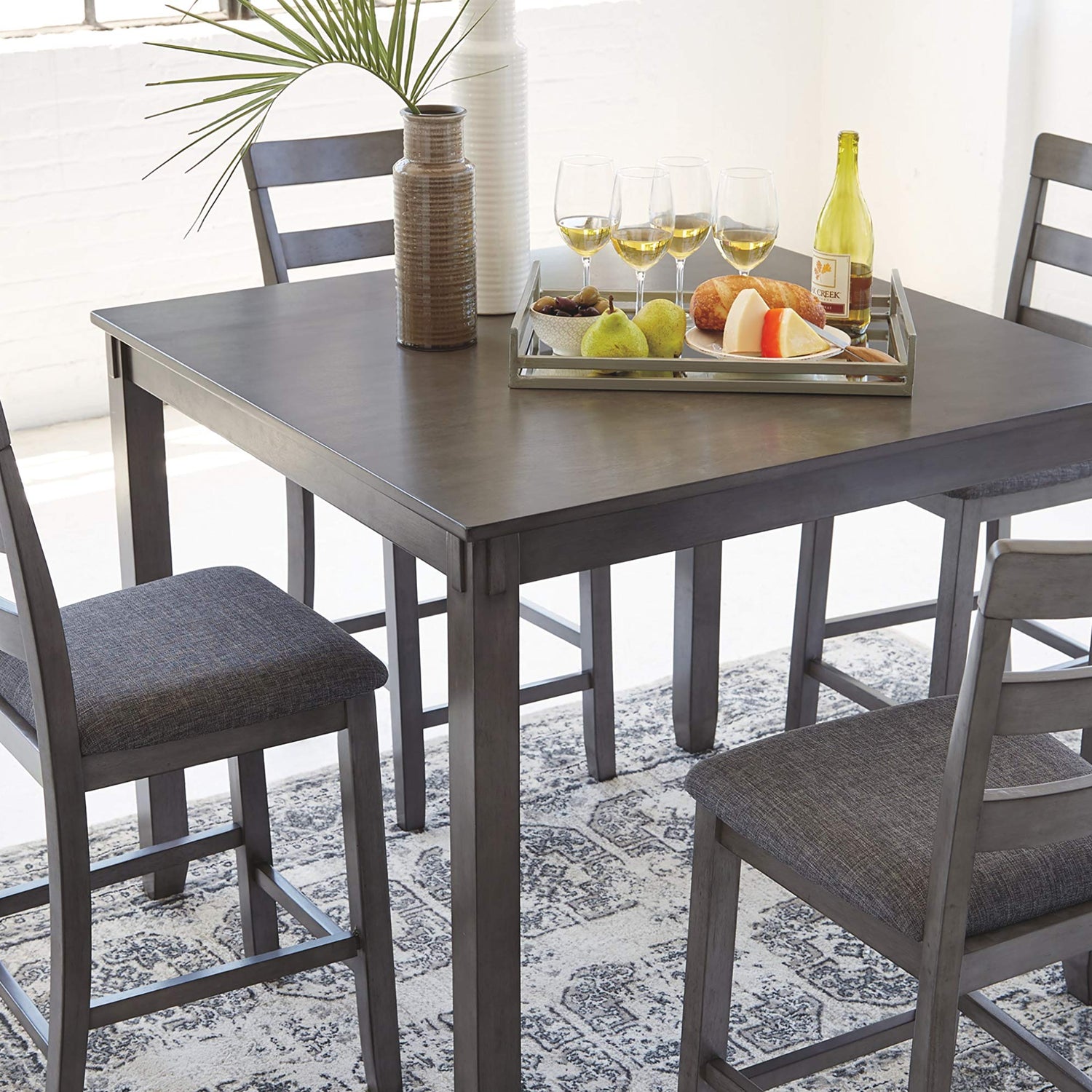 Signature Design by Ashley Bridson 5 Piece Counter Height Dining Room Set, Includes Table & 4 Bar Stools, Gray