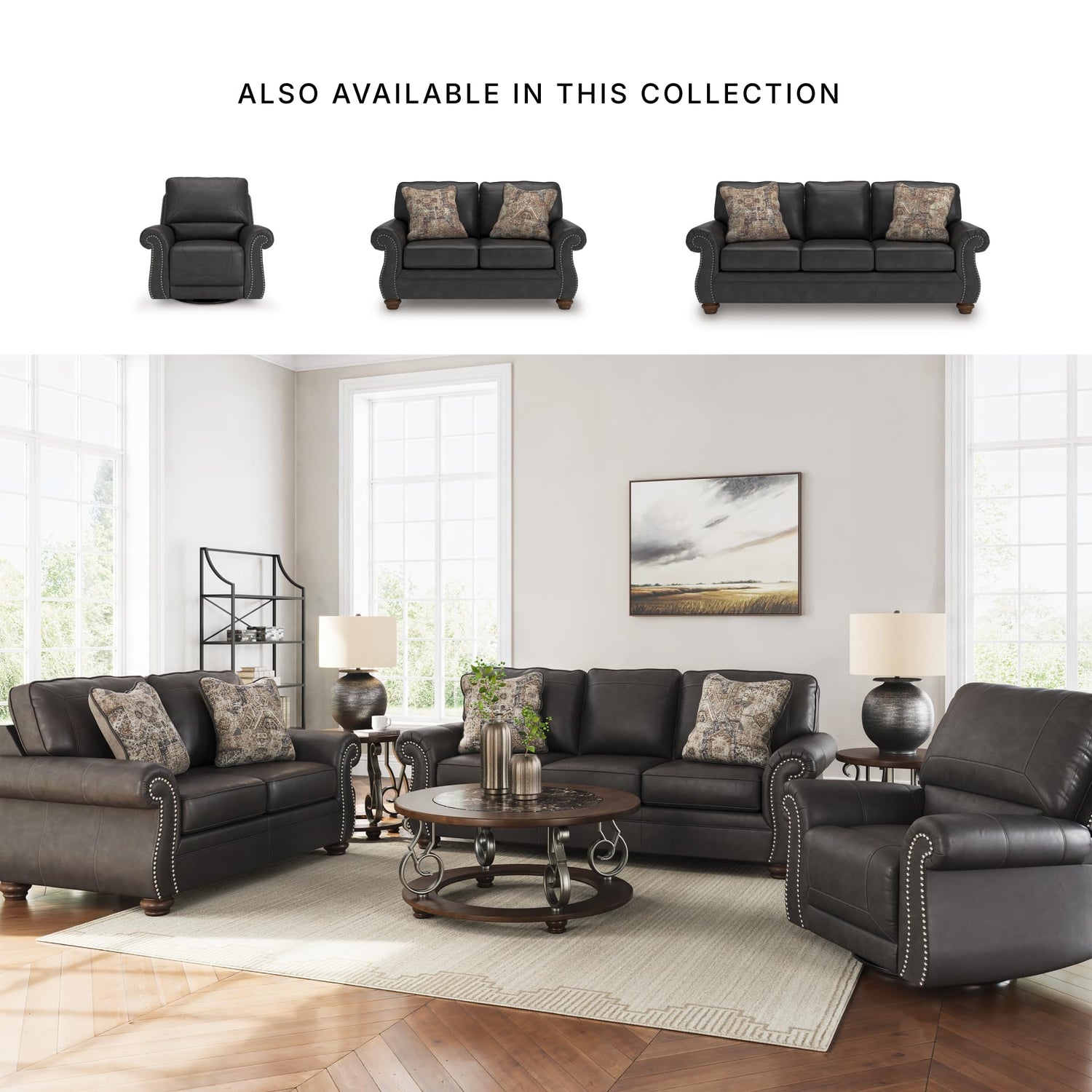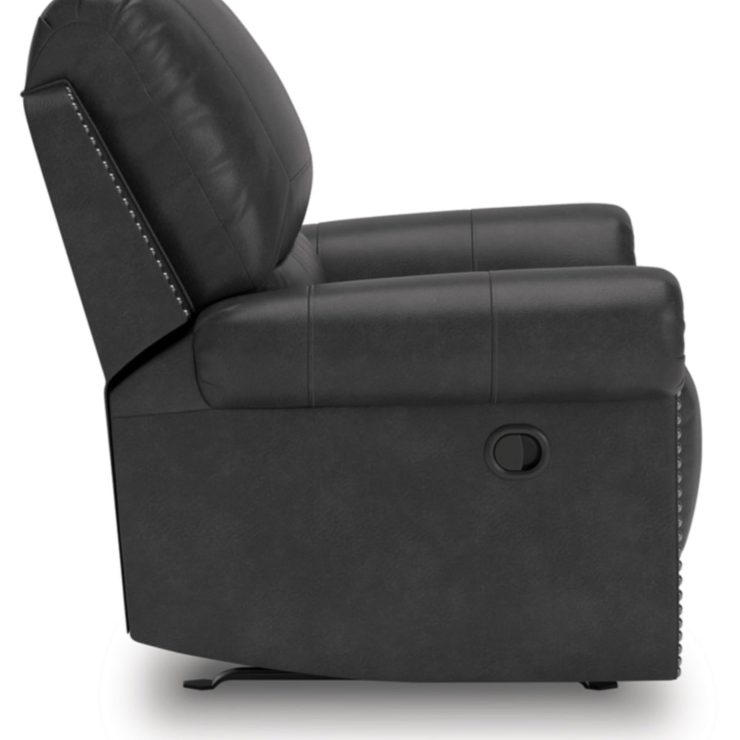 Signature Design by Ashley Chatterton Classic Faux Leather Manual Rocker Swivel Glider Recliner with Nailhead Trim, Black