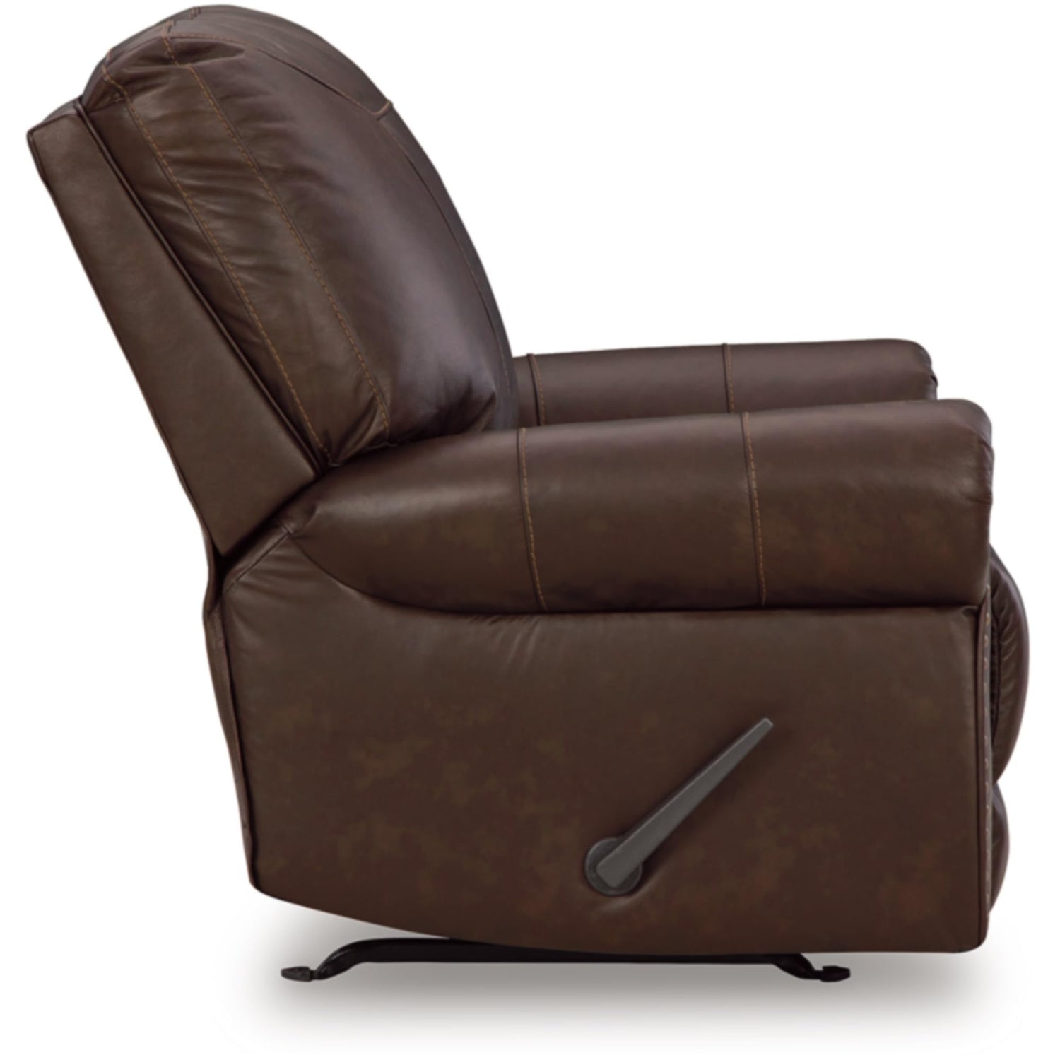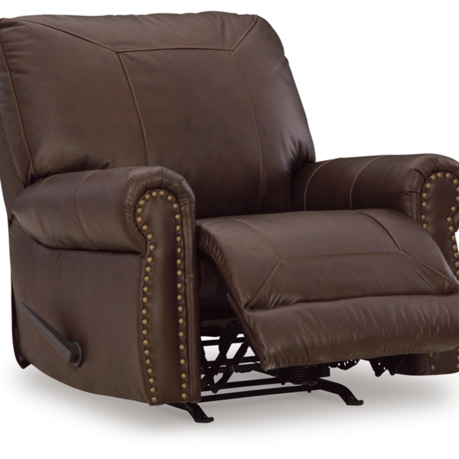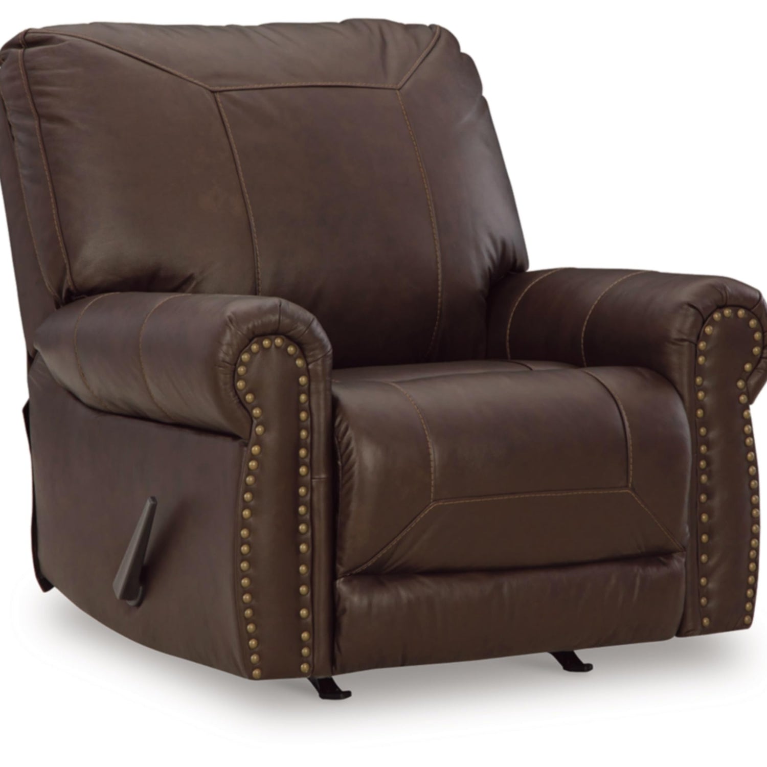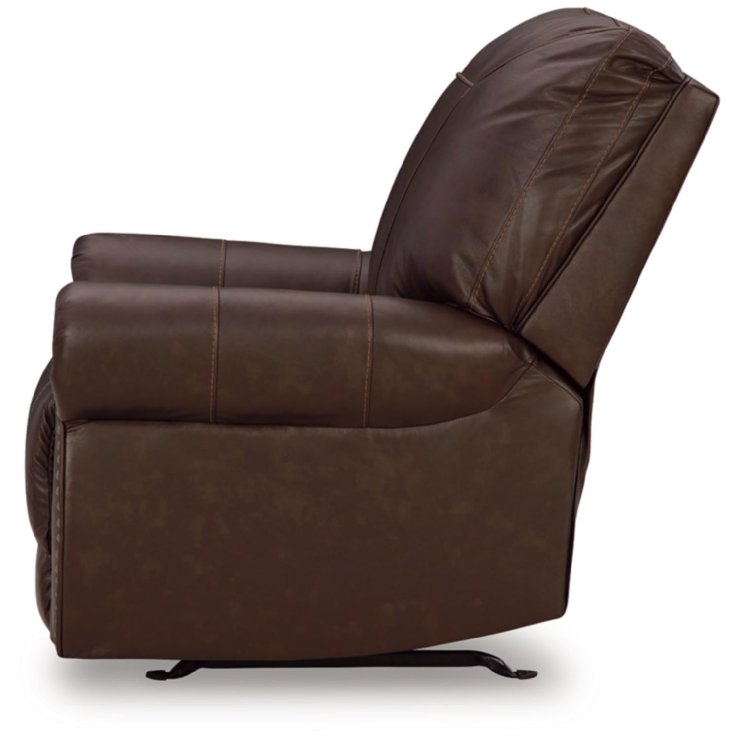 Signature Design by Ashley Colleton Classic Leather Match Upholstered Manual Recliner with Nailheads, Dark Brown