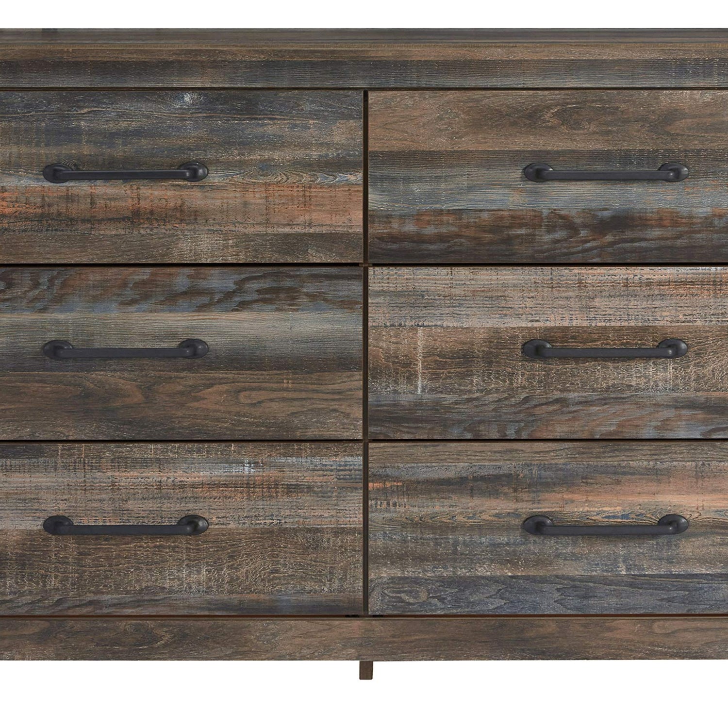 Signature Design by Ashley Drystan Rustic Industrial 6 Drawer Dresser, Weatherworn Brown